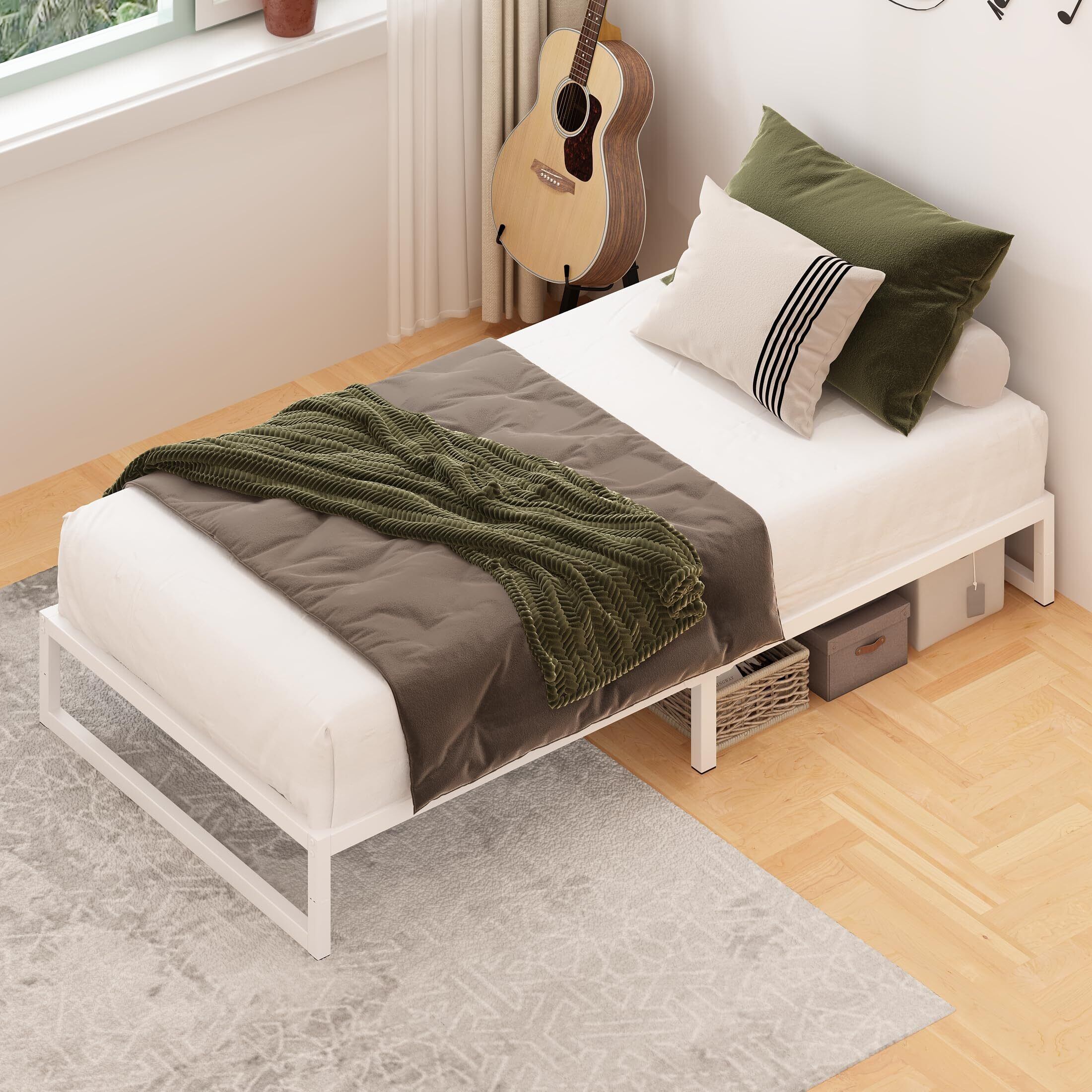 ベッドフレーム シングル ローベッド スチールフレーム メタル 低い 収納付き パイプ 通気性 安定性 頑丈 耐久性 静音 ギシギシしない シンプル おしゃれ 組み立て簡単 高さ25cm ホワイト