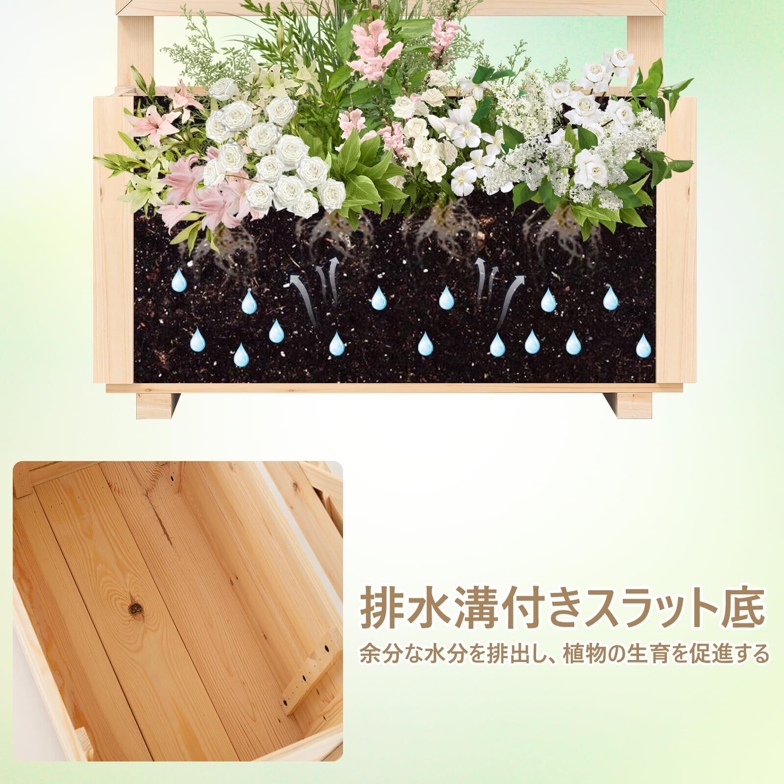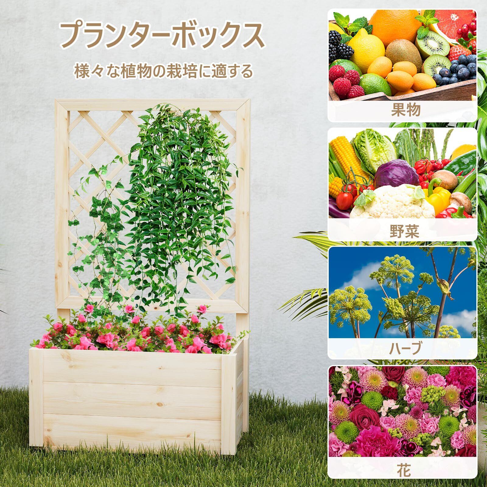TANGKULA プランター フェンス付き 高さ100cm ラティス プランタースタンド ラティスフェンス 目隠し 木製 無垢パイン材 ガーデニング おしゃれ DIY 簡単設置 園芸体験 排水構造 野菜栽培 省スペース 耐候性 自宅 庭 ベランダ