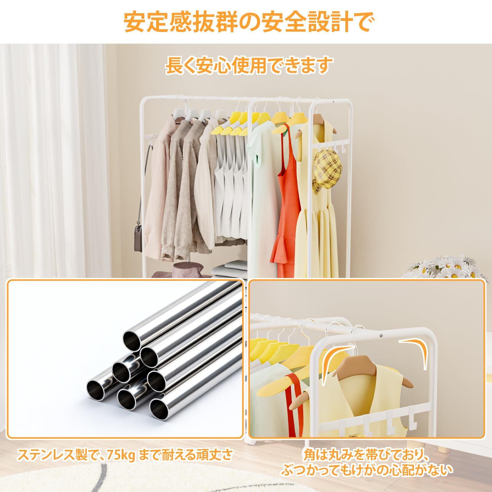 【移動式デザイン】360 度回転できる低騒音キャスターを備えたハンガーラックです。フローリングに傷をつけることなく、夜中でも静かにスムーズに移動できます。必要な場所に自由に置ける実用的な構造で、部屋のレイアウト変更も簡単にできます。
