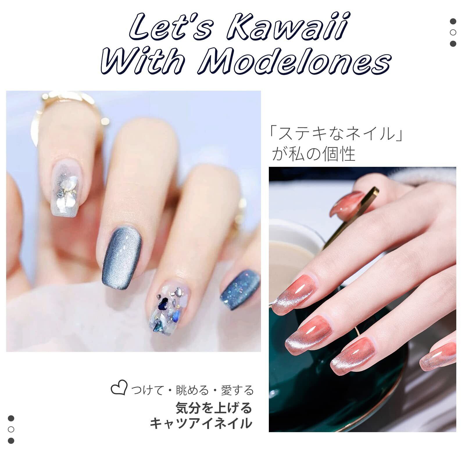 粘度:使いやすい粘度、流れそうで流れない。指先に磁気の光を集めたマグネットネイル。小粒のラメが繊細で、煌びやかなのに上品に仕上がります