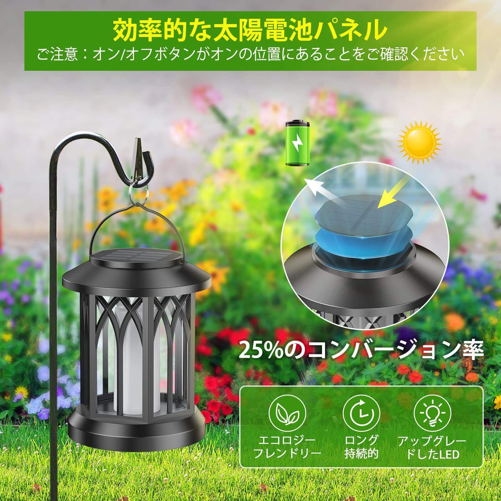 Letmy ソーラーランタン ソーラーライト 屋外 防水 ガーデンライト 屋外 防水IP65 火炎 イルミネーション 飾り LED 太陽光パネル充電 夜明け 自動オン/オフ パティオ、玄関、パーティー、庭、駐車場などに適用 ブラック 2個セット