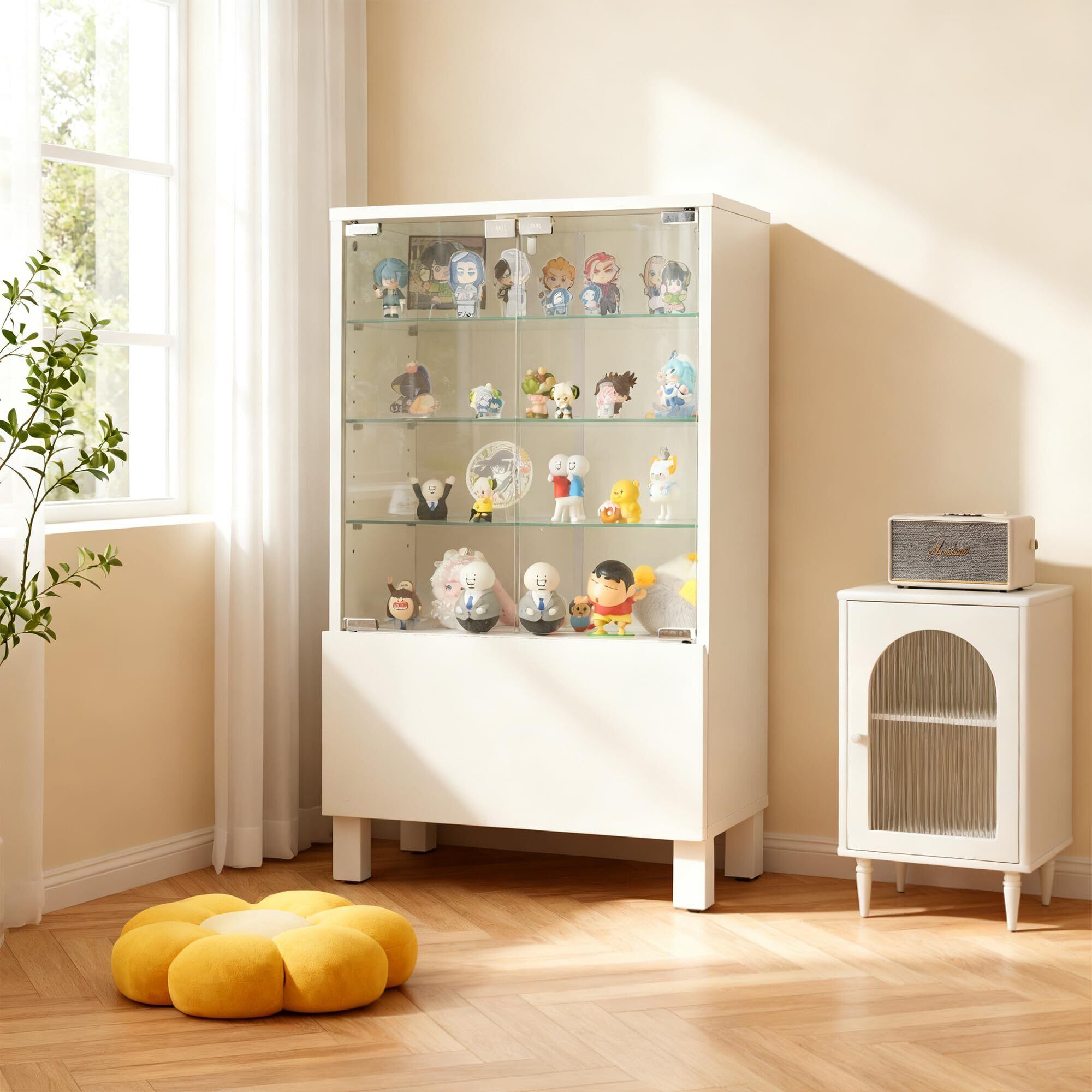 オーエスジェイ(OSJ) ガラスケース コレクションケース コレクションシェルフ ガラスディスプレイキャビネット 引き出し 推し活収納 可動棚 4段 高さ調節可能 強化ガラス棚 ホワイト