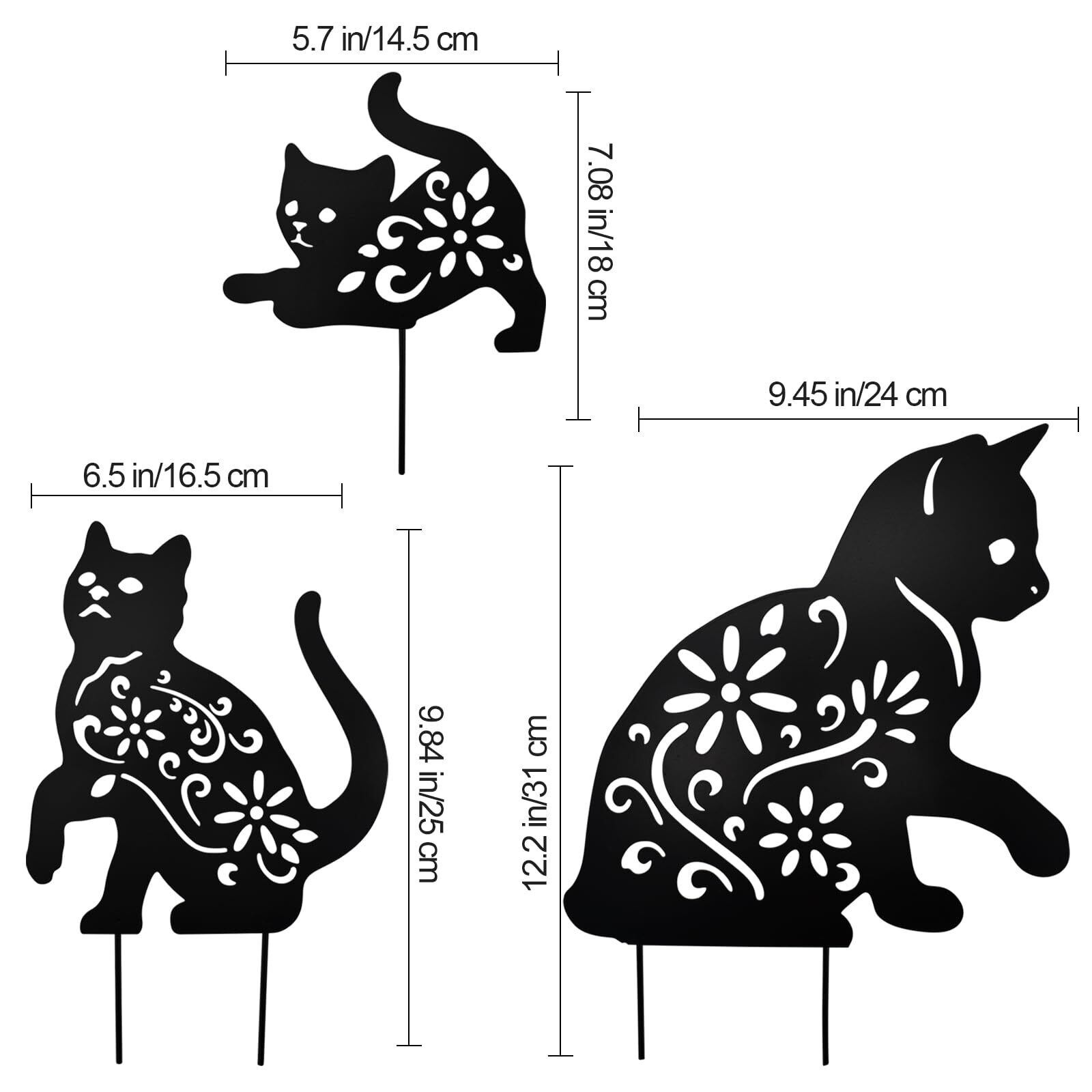 MrMrKura ガーデニング雑貨 猫 金属製 ガーデン 飾り プレート 猫 ガーデン置物 ガーデンオーナメント 透かし彫り 鉄製 屋外 ガーデンオブジェ 園林 園芸用品 芝生 お洒落 北欧 シルエット 屋根 インテリア (3匹猫)