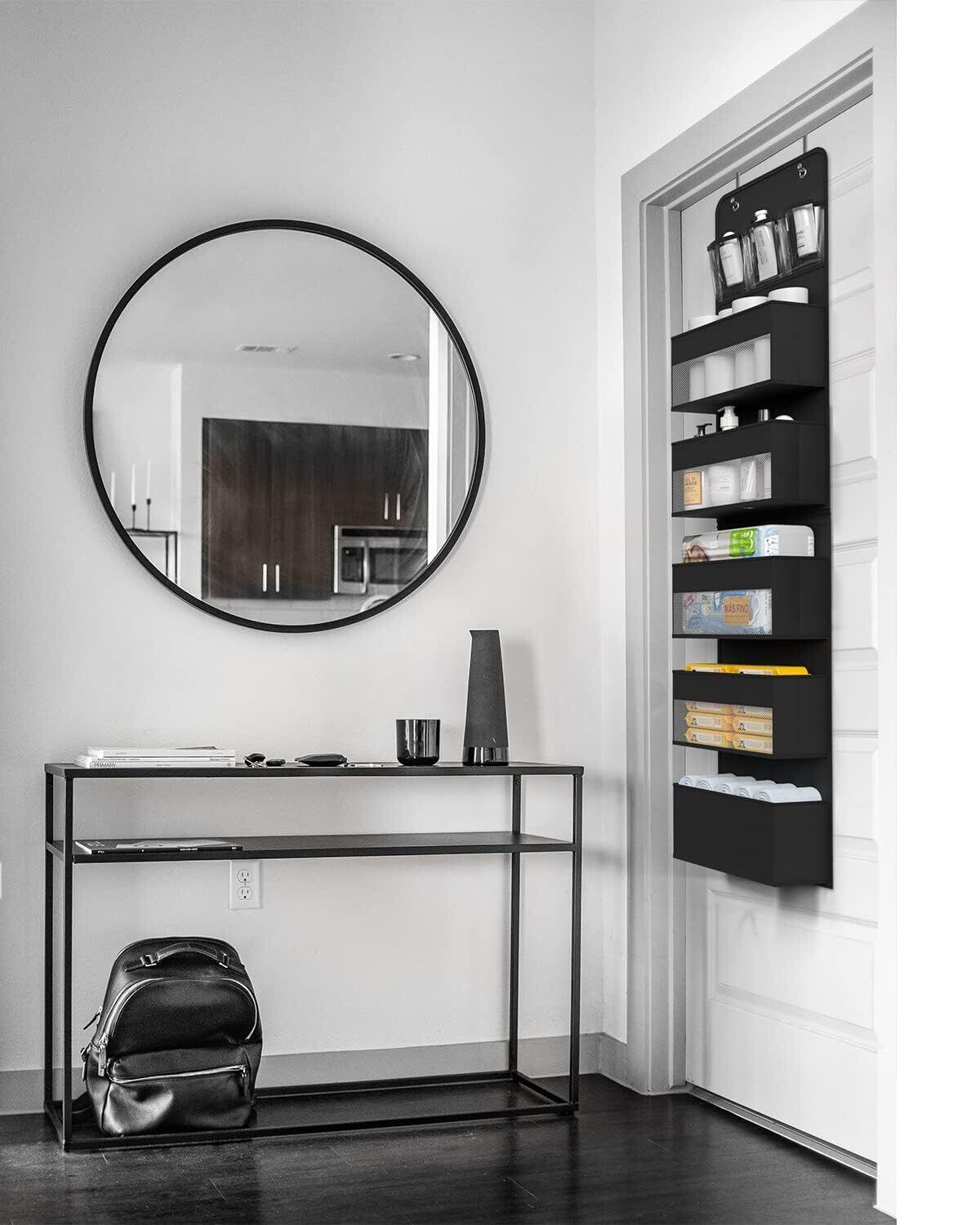 ウォールポケット ドア掛け 収納ポケット 壁掛け 6段 分割可能 メッシュ窓 吊り下げ収納ポケット スイングプルーフ 頑丈 大容量 不織布 スキンケア用品/タオル/ドライヤー/おもちゃ/雑誌などの収納 フック4個付き (ブラック)