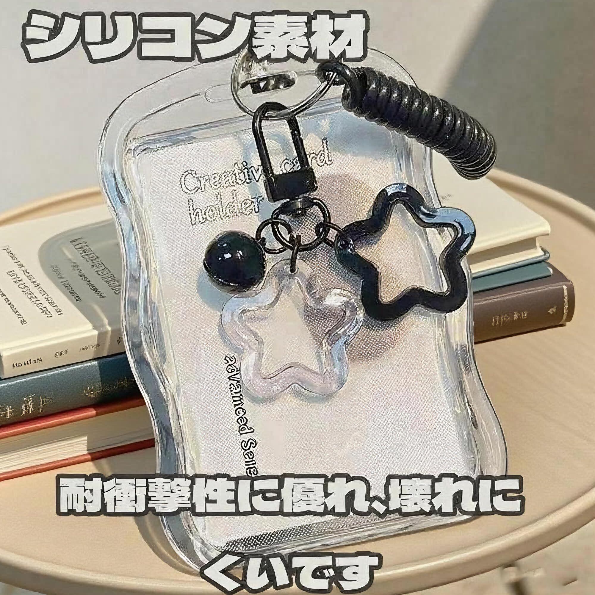 特徴 シリコン素材、両面透明デザイン、キーリング付き