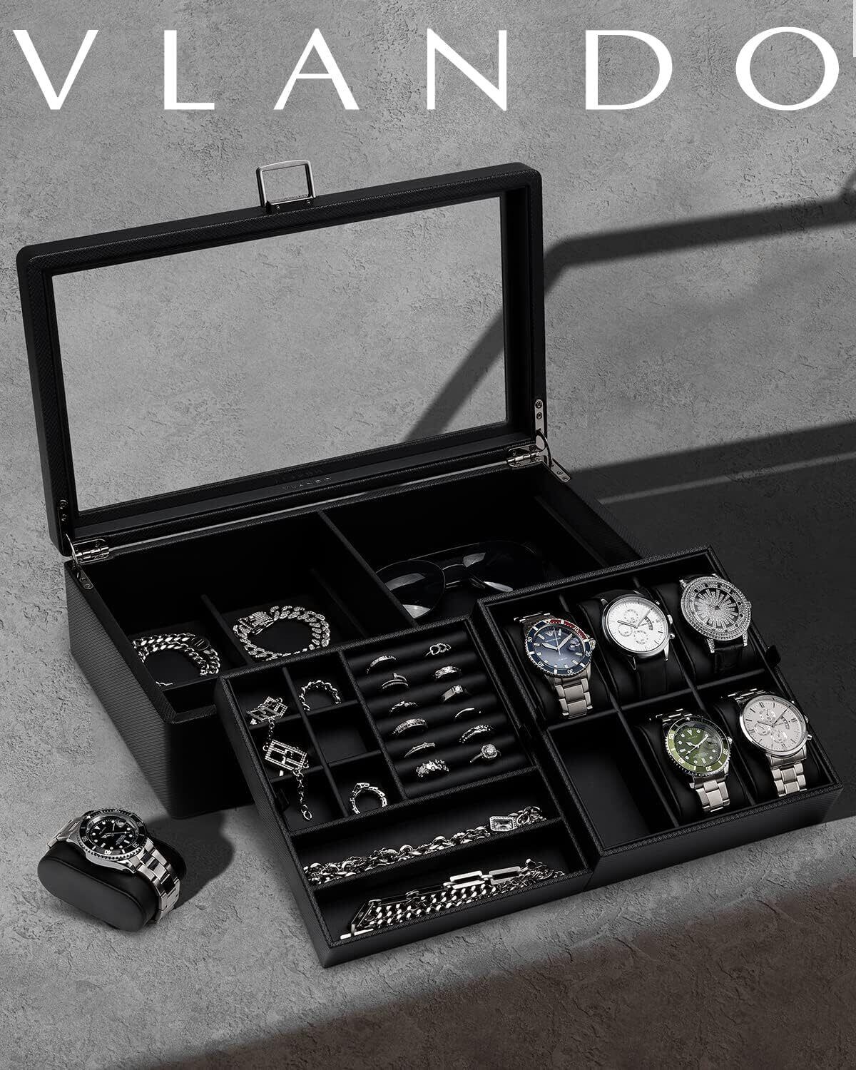 Vlando 時計ケース 6本 PU製 メンズ 収納ボックス アクセサリーケース アクセサリー収納 ジュエリー 2段 誕生日プレゼント