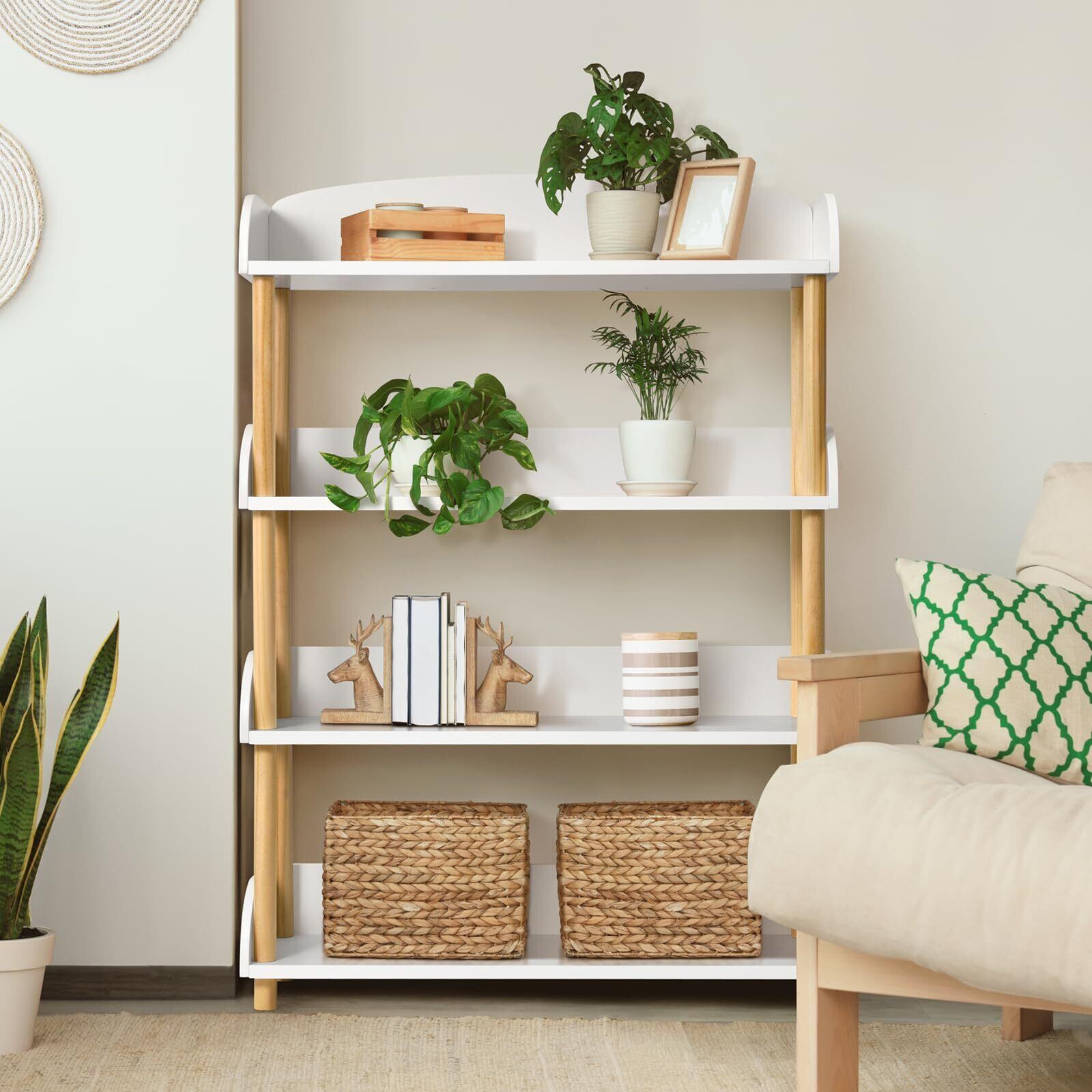 TOOKYLAND オープンラック4段 木製 本棚 キッチンラック 収納棚 おしゃれ 大容量 スリム すっきり整理できるオープンシェルフ 組立簡単 寢室 リビング ホーム オフィス用