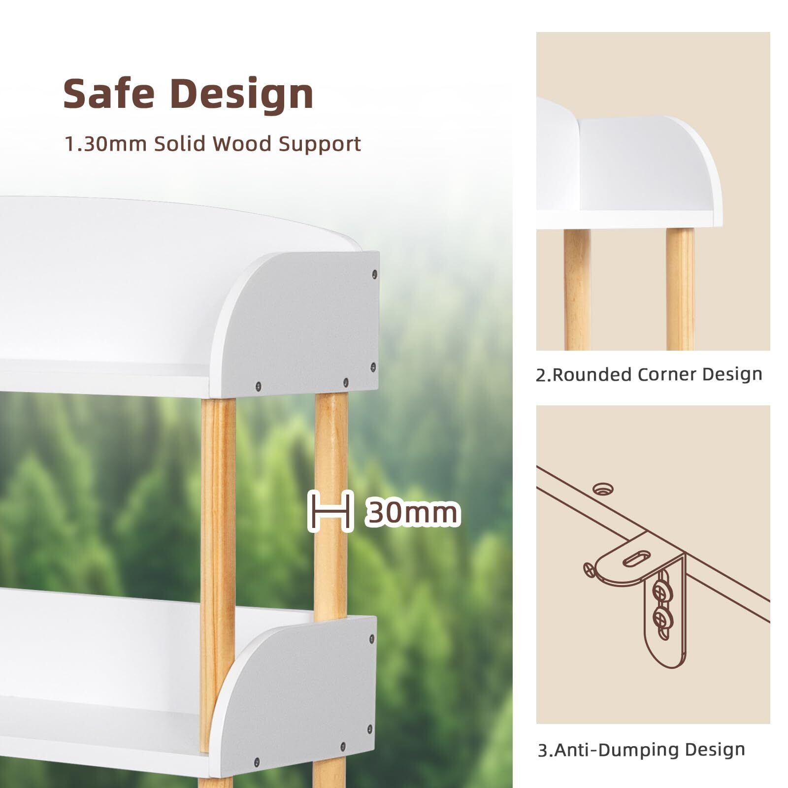 【頑丈で安全な構造】:18mm厚強化センターサネルと30mm角無垢材連結部による強化構造で、揺れない安定性を実現。全ての角は丸く研磨加工済みで、お子様がぶつかっても安心。長期間ご使用いただける耐久性を備えています