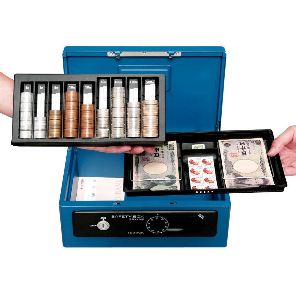 アイリスオーヤマ 金庫 手提げ金庫 ダイヤル式 ダブルロック A5 ダブルトレー SBX-A5ブルー