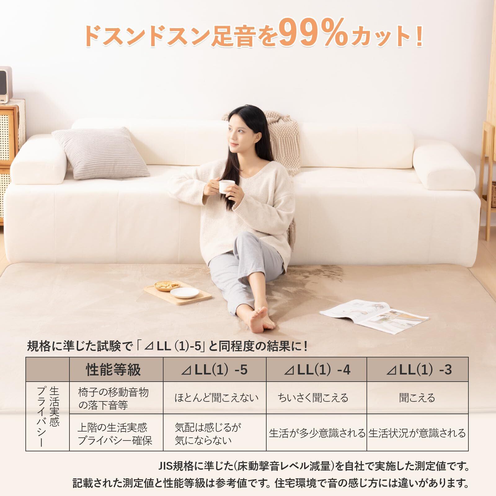 【 静音性 & 防滑裏面で集合住宅に最適】特殊無防布裏面(150g/m² (滑り止め付))が床と密着し、歩行時の『ズレ』や『ガタつき音』を完全遮断。マンションやアパートでも騒音を気にせず、深夜・早朝の生活音を抑制します。