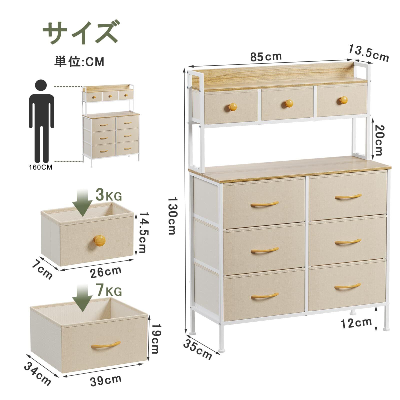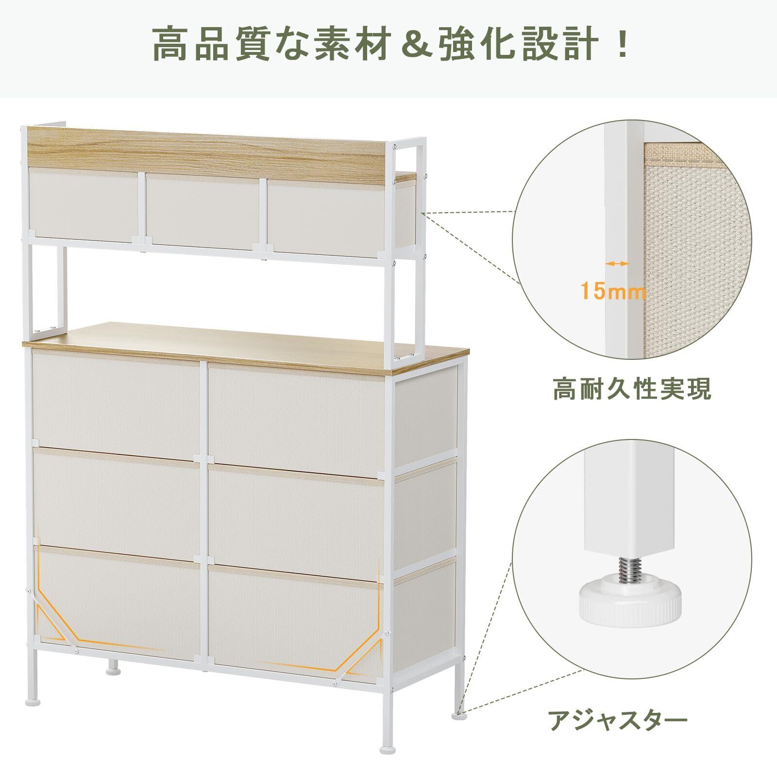 2段棚タンス 9杯ハイチェスト 収納チェスト・ドレッサー/化粧台・テーブル 幅85cmマルチチェスト 収納棚 棚付き 布製引き出し 洋服・衣類収納・衣装ケース 箪笥 おしゃれ(高通気性カチオン生地 ベージュ)