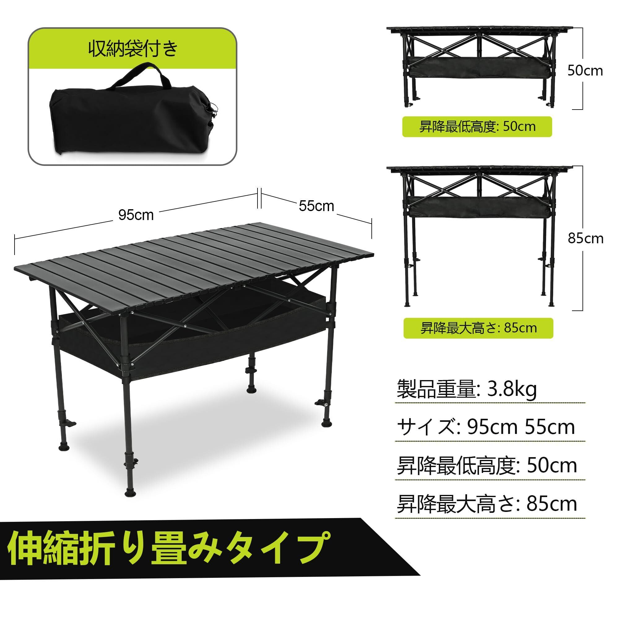 rloao キャンプ テーブル 折り畳み 高さ調整可能(50-85cm) 耐荷重100kg 二重収納スペース 軽量 折りたたみテーブル 炭素鋼素材 防水 防油 耐熱 アウトドア ロールテーブル 組み立て簡単 収納袋付 携帯便利 多機能 自由なDIY(ブラック 95x55 ㎝)