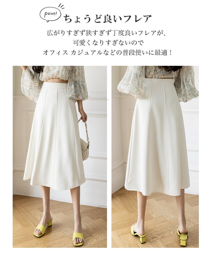 [House Yayoi] スカート フレア レディース ミモレ丈 膝丈 きれいめ 落ち感 大人可愛い 膝下 ゆったり ロング丈 膝丈 夏 秋 体型カバー 着痩せ 裏地付き ハイウエスト オフィス 清楚系 通勤 Skirt