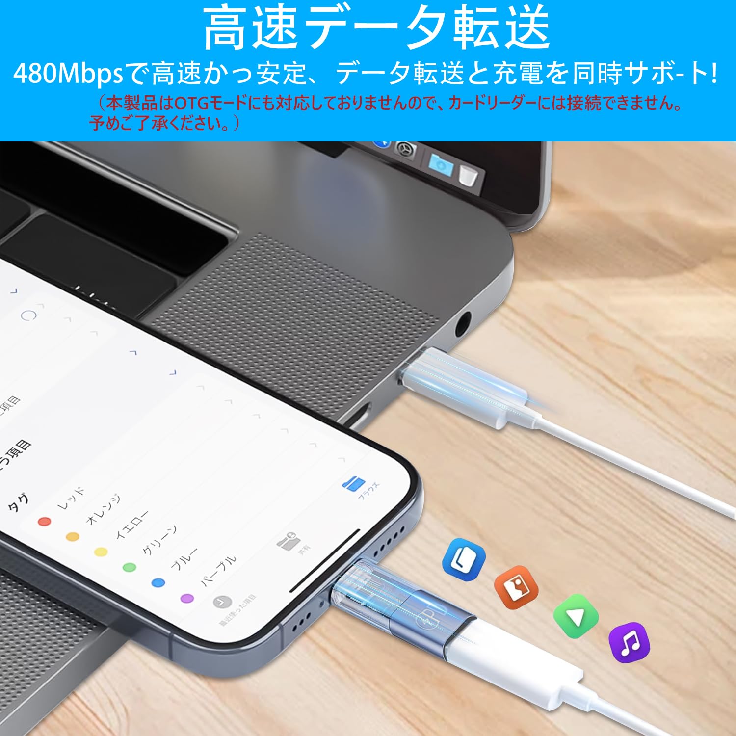 ライトニング タイプc 変換 PD60W急速充電 480Mbps高速でデータ転送 ライトニングケーブル usb-c 変換 usb c 変換アダプタ ライトニング i-Phone 17シリーズ/i-Pad Pro/Mac-book/Galaxy/Pixel などUSB-Cデバイスに対応( 1個セット/ヘッドフォン変換には適用されません)