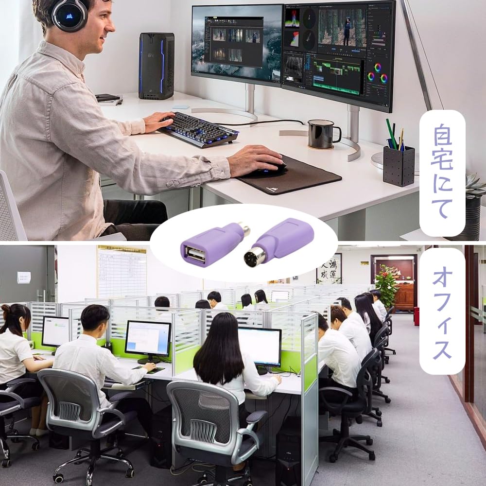 PS2-USBコネクタ パープル 2個入り マウスとキーボードのコンバーター PS/2キーボード対応PS/2(オス) - USB変換アダプタ(メス)