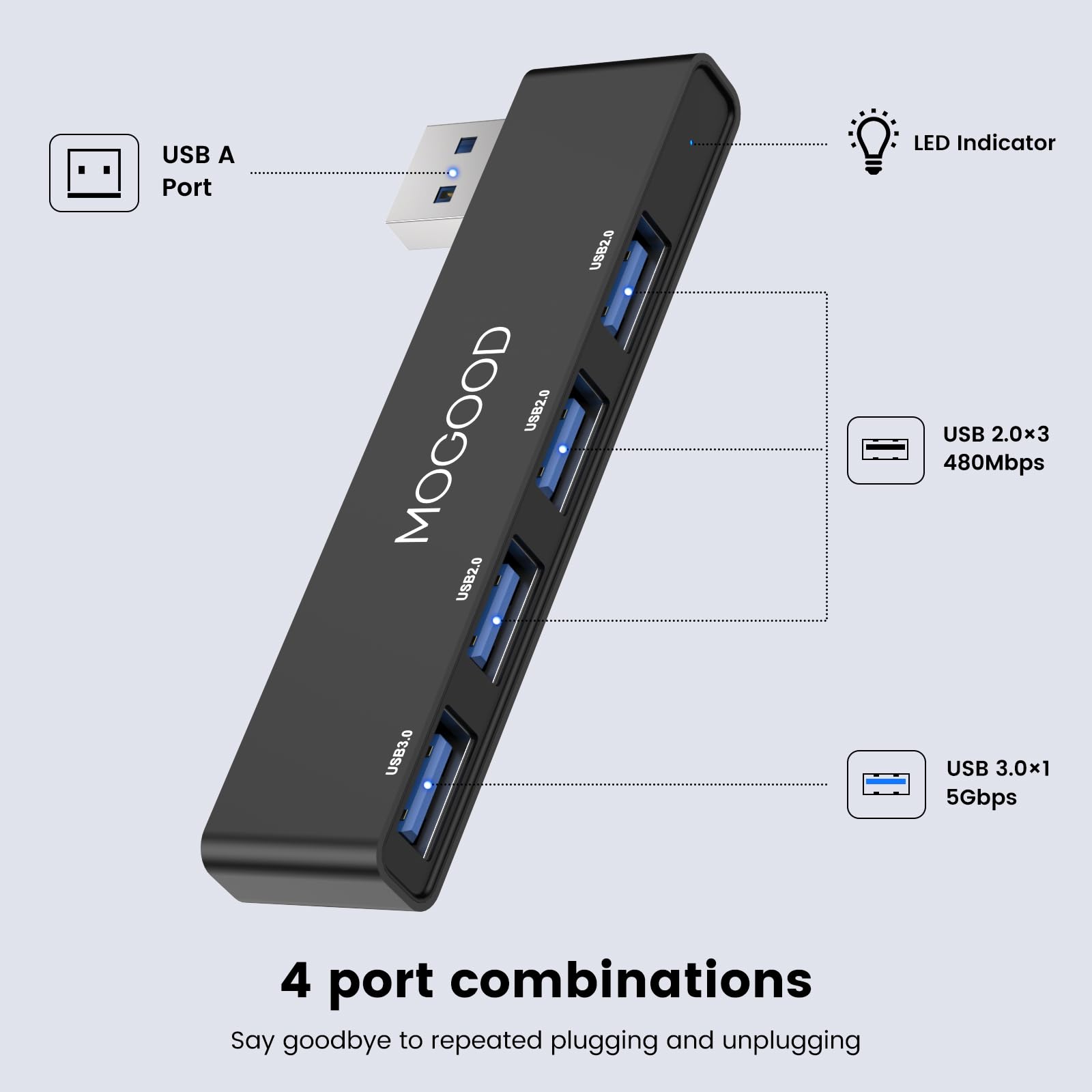 MOGOOD USBハブ3.0 USBスプリッタ ノートパソコン用USBハブノートマルチポートアダプタ USBポートエクスパンダノートパソコン、PC、MacBook、Mac Pro、Mac Mini、iMac、Surface Pro