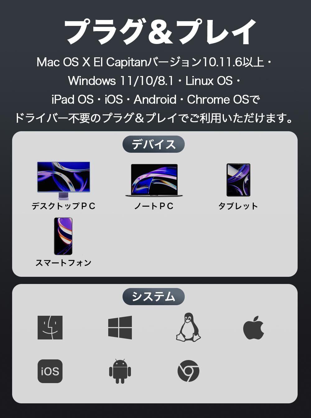 [] 本製品は、6ポートを備えたUSB Type-Cハブで、4K@60HzのHDMI出力、1Gbpsのイーサネット、100Wのパワーデリバリー機能を搭載。さらに他3つのUSBポートは高速データ転送が可能。6-in-1高性能USBハブです。