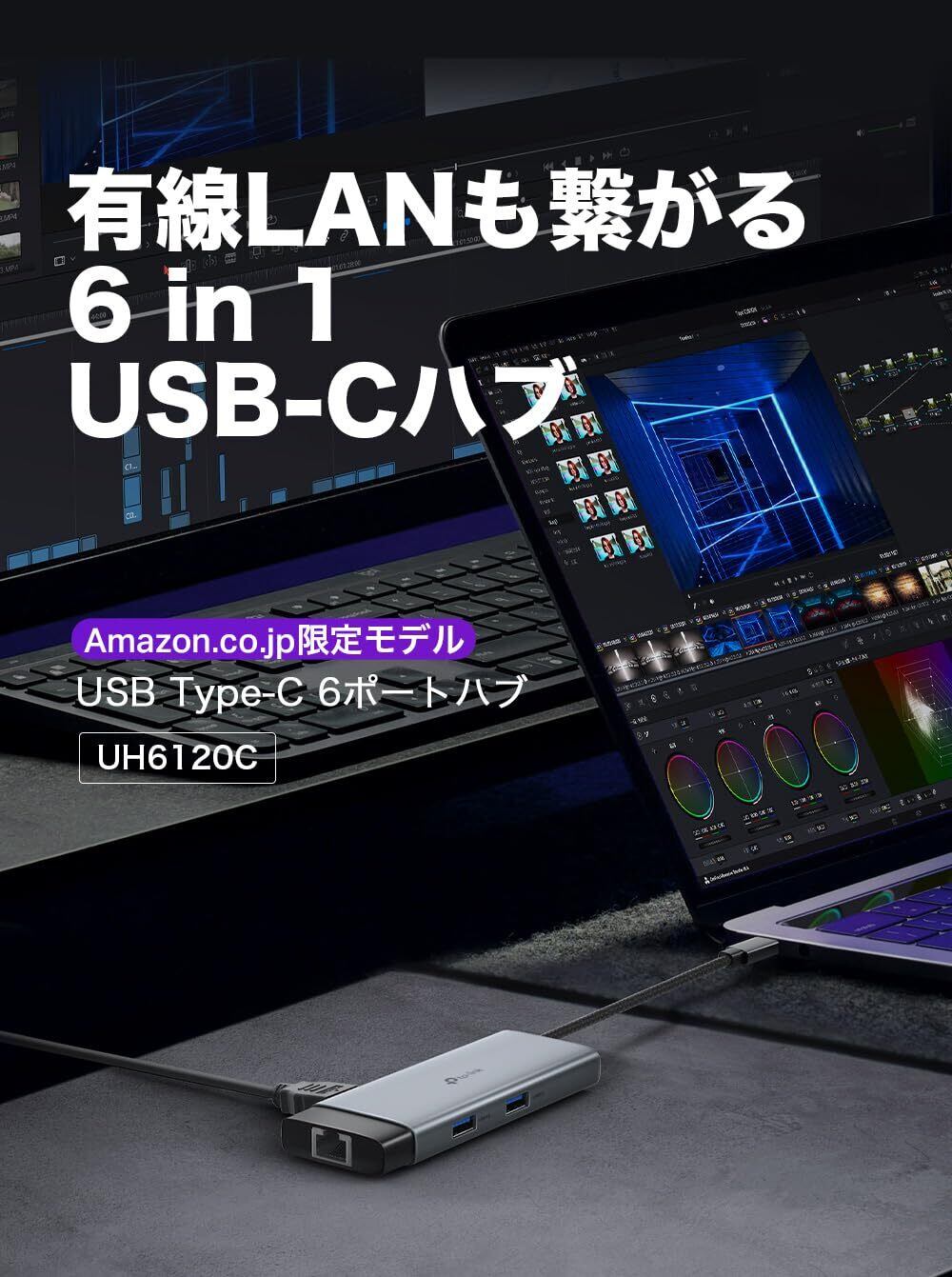 TP-Link USB Type-C 6ポート ハブ 4K@60Hz HDMI / 1Gbps イーサネットポート / 100W 高速給電/USB-C ポート x1 / USB-A ポート x2 プラグ&プレイ Windows 11/10/8.1 Linux OS iPad OS iOS Chrome OS Nintendo OS 対応 UH6120C