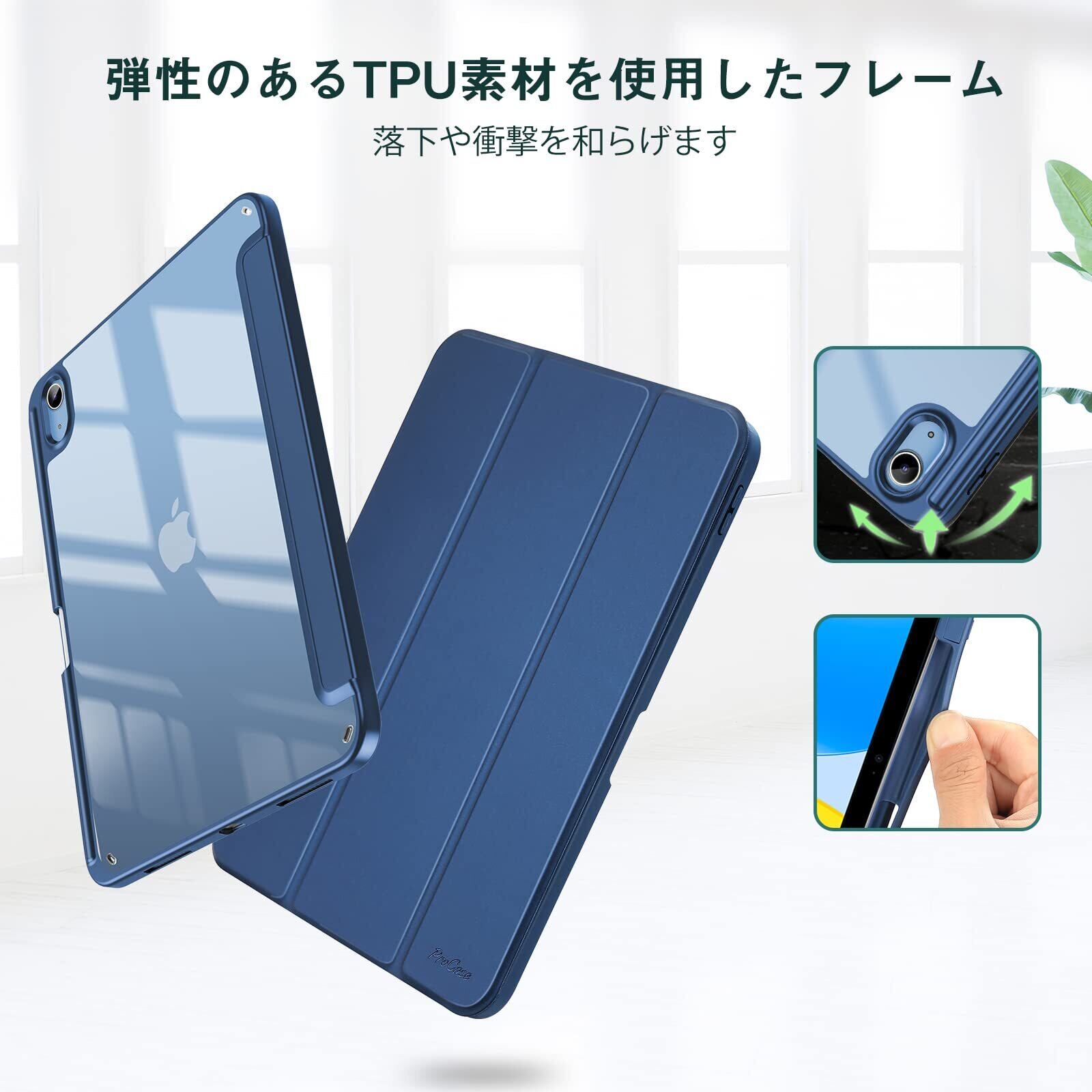 ProCase iPad 11世代/10世代 ケース iPad(A16)11インチ 2025/10.9インチ 2022通用 A2696 A2757 A2777 ペン収納 耐衝撃 三つ折り スタンド スマートカバー(ネイビー)