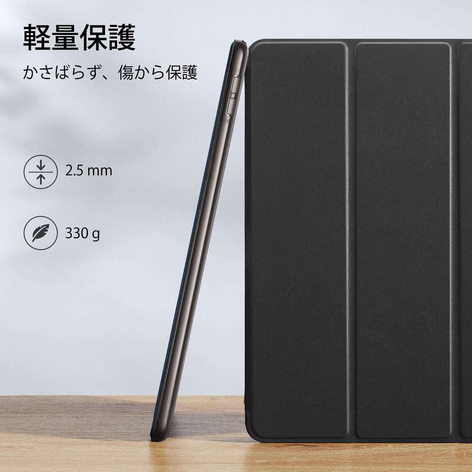 ESR iPad 9世代 ケース ipad カバー 第9/8/7世代通用 (2021/2020/2019モデル) 10.2インチ 半透明 指紋防止 三つ折りスタンド オートスリープ/ウェイク機能 薄型 軽量 傷防止 耐衝撃 ハードカバー ブラック