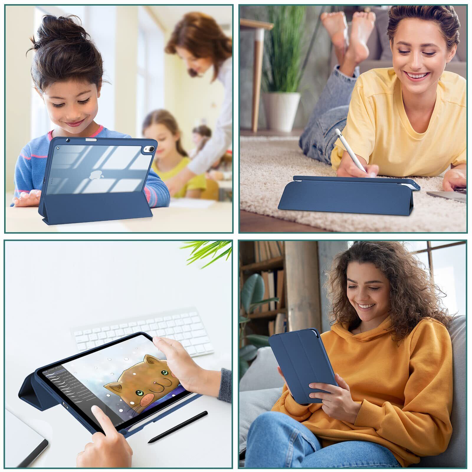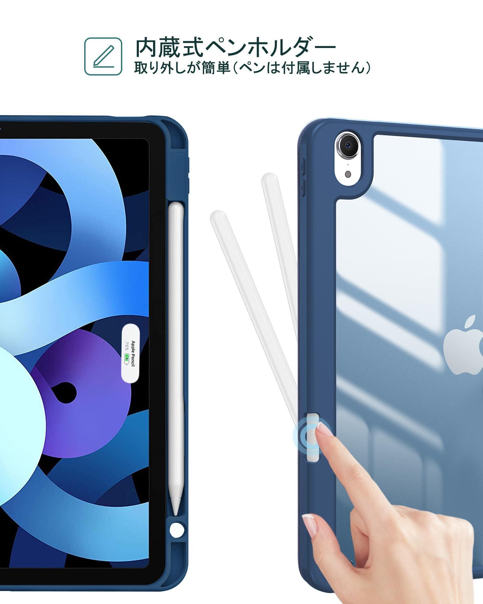 ProCase iPad Air 11インチ ケース M3 (2025) / M2 (2024) / iPad Air5 (2022) / Air4 (2020) 10.9インチ 透明 クリアカバー ペン収納 耐衝撃 三つ折り スタンド スマートカバー (ネイビー)