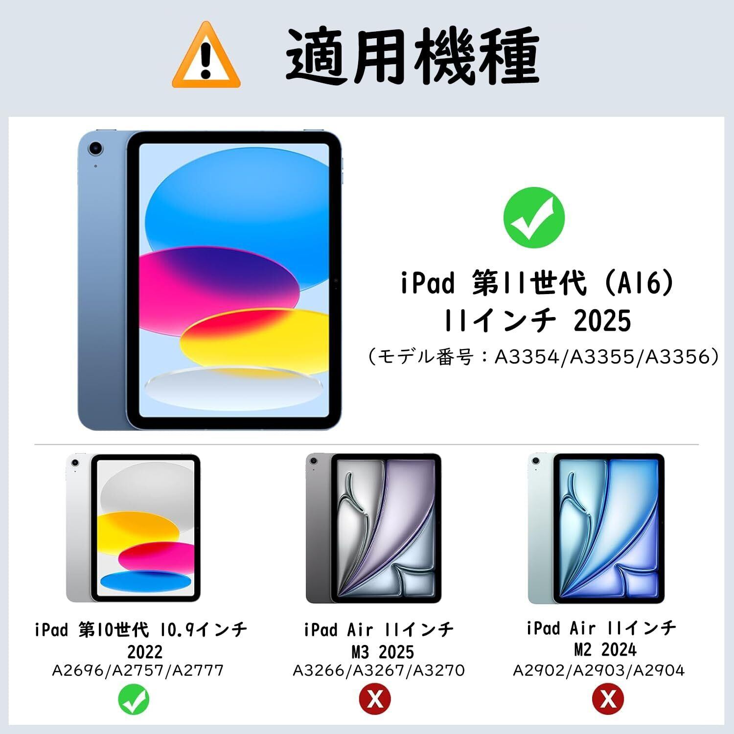 「iPad 第11/10世代専用」 2025発売のiPad第11世代(A16)11インチ(モデル番号:A3354/A3355/A3356)と2022年発売のiPad第10世代10.9インチ(モデル番号:A2696/A2757/A2777) のみに対応できる手帳式のケースです。薄型かつ軽量化にした設計で、取り扱いやすくiPadにピッタリフィットできる見栄えも保護力も両立させたスマートケースです。iPad第10世代以外の機種に対応できません。ご購入になる前に、機種をしっかりと確認してください。