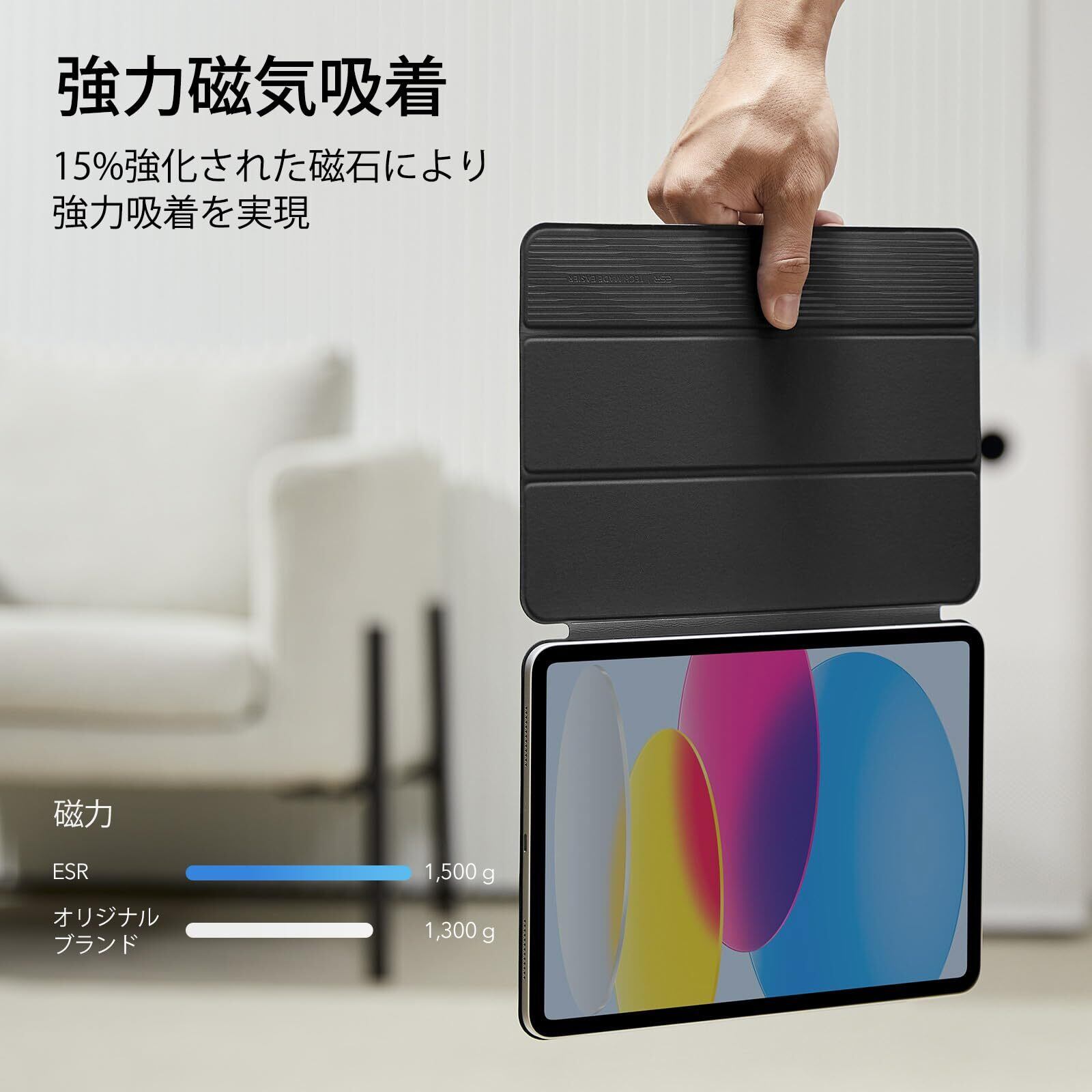【強力マグネット吸着】:強力なマグネットがケースとタブレットを強力に固定します