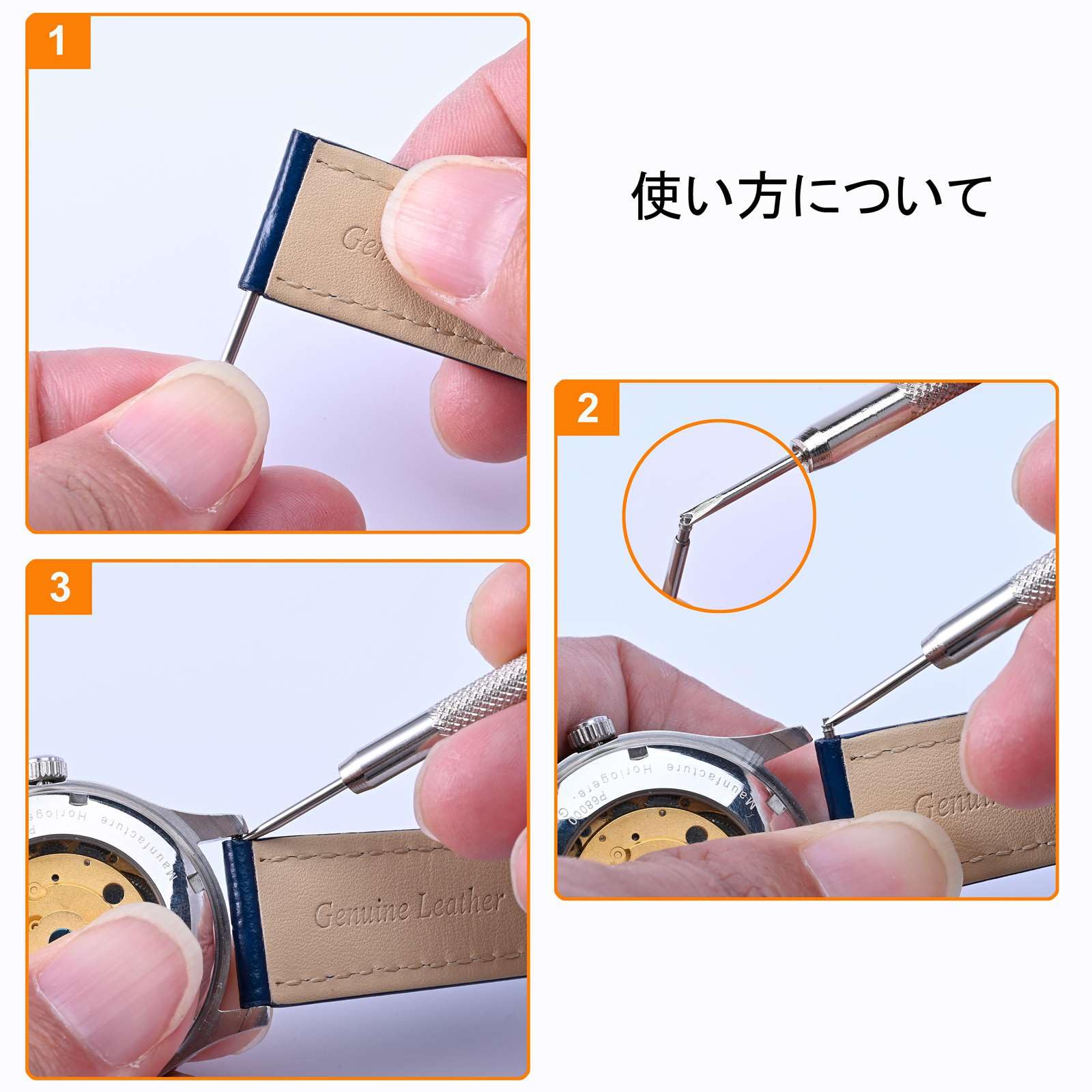 スプリングバー4本及びバネ棒外しがセットになっております。自分自身で腕時計ベルトの交換ができます。