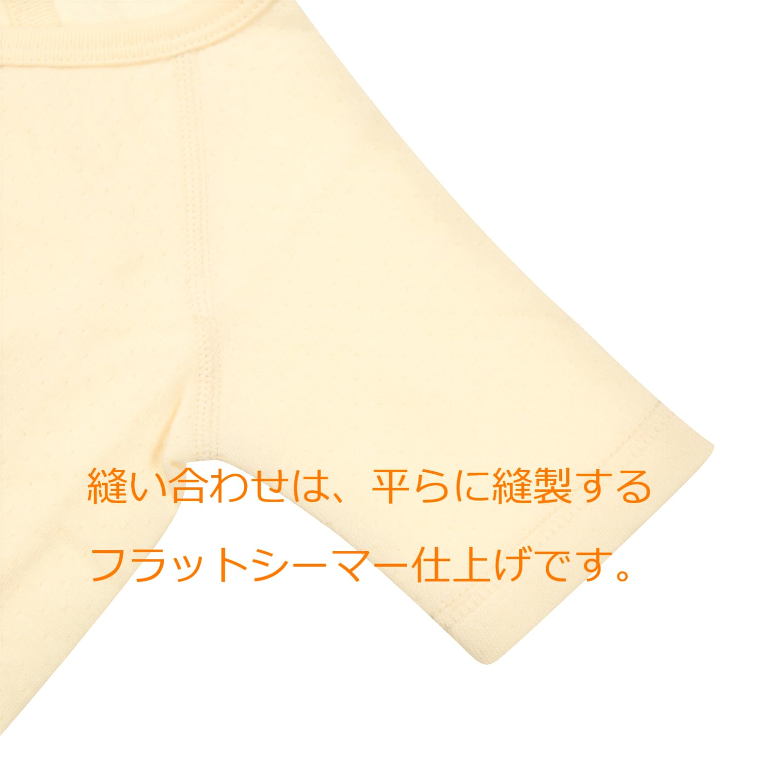 生地は二重ガーゼニット生地で、中間に空気の層があり、夏は吸水性に冬は保温性に優れ、オールシーズン赤ちゃんの体温管理に最適な肌着です。