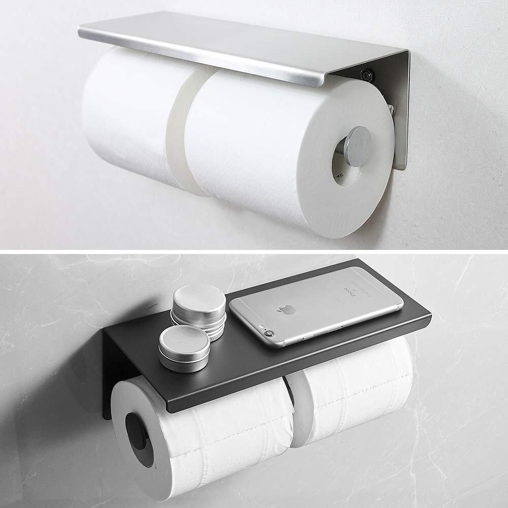 SUS304ステンレスを使用したシンプル・スタイリッシュなトイレットペーパーホルダー。2つのトイレットペーパーをセットできます。スマートフォンを置けるテーブル付き。