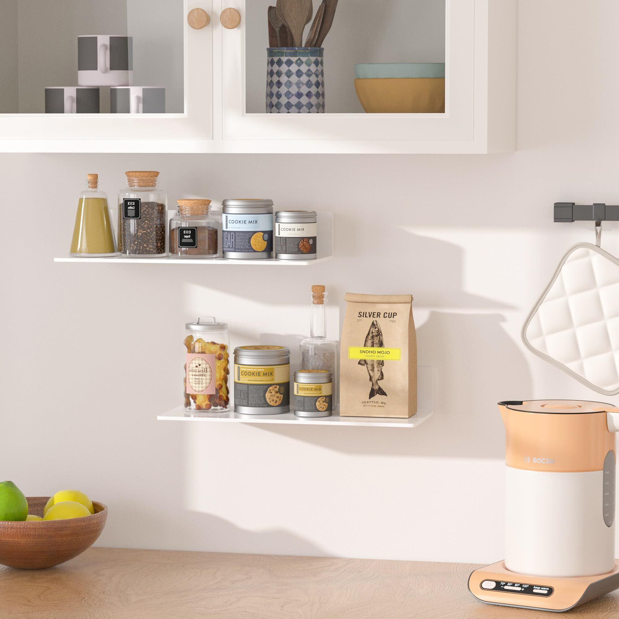 Sezanrpt 2 個入り 白色アクリルフローティング棚 38cm、壁掛け式浴室棚、キッチン、ダイニングルーム、リビングルーム、ベッドルーム、浴室、小売店、スーパーマーケット用壁掛け収納棚