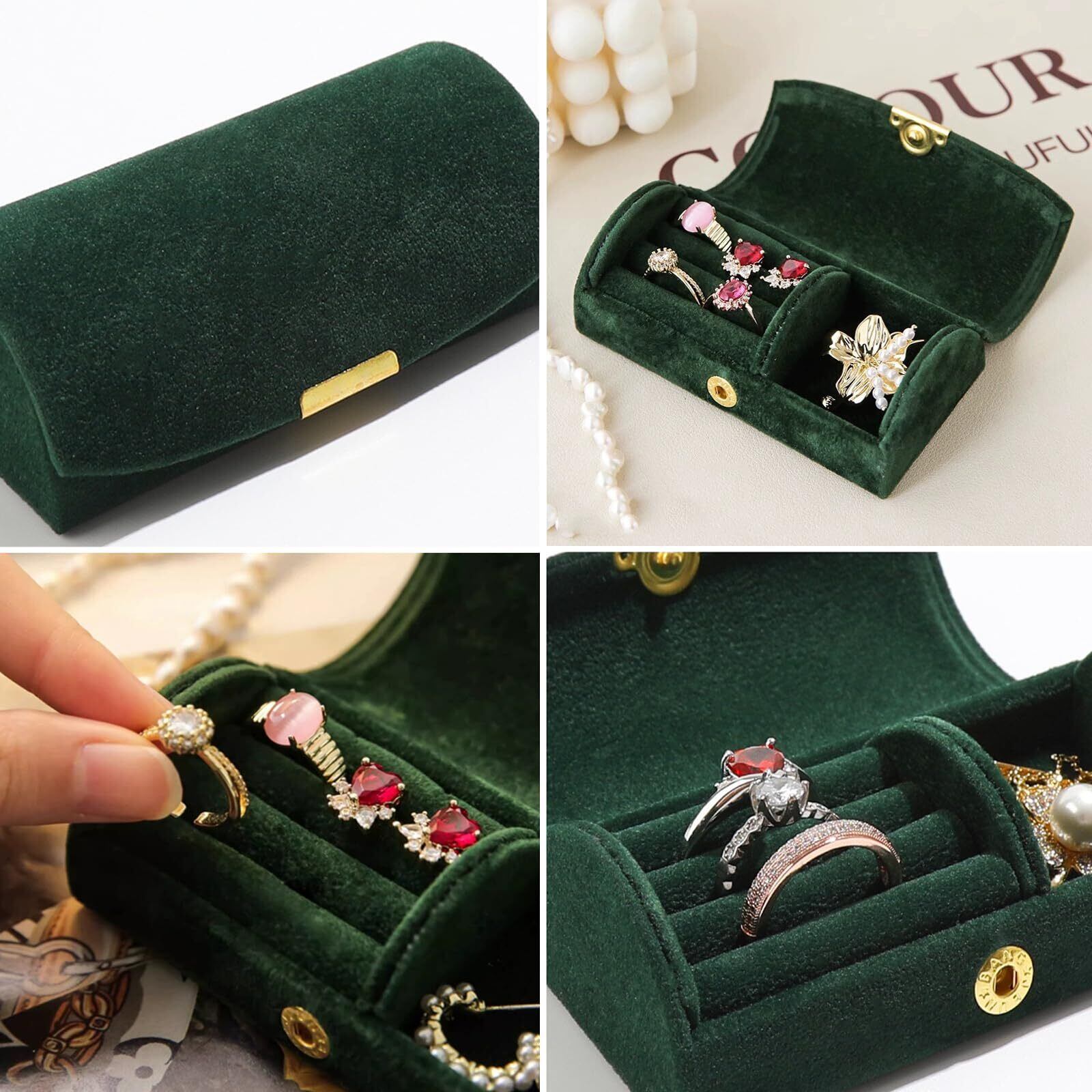指輪ケース ミニ ジュエリーケース アクセサリーケース ジュエリーケース 持ち運び 軽量 コンパクト (赤)