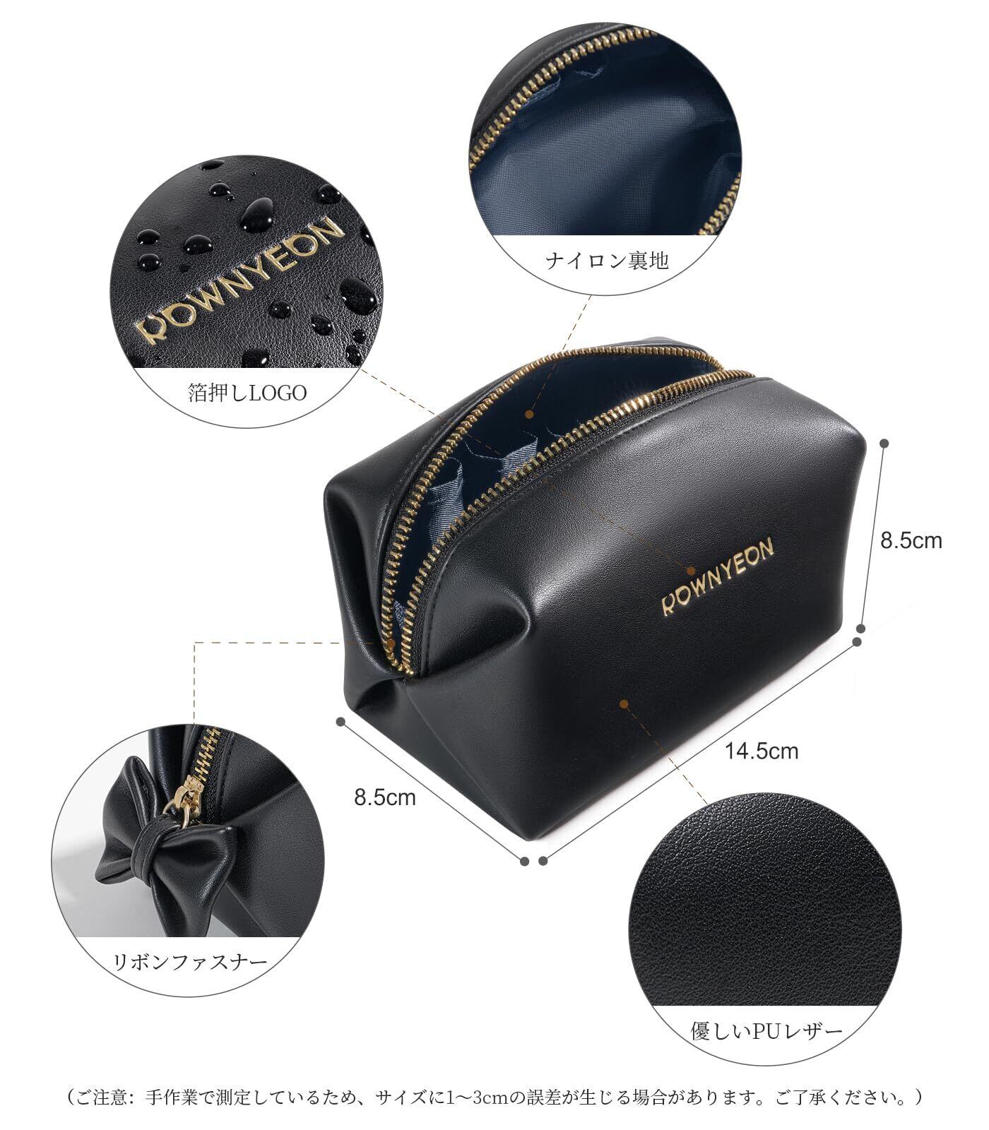 Rownyeon メイクポーチ 持ち運び リボン かわいい コンパクト 仕切りたくさん 化粧ポーチ 韓国風 防撥水 PU 小物入れ ミニ 小さめ 誕生日贈り物 ギフト