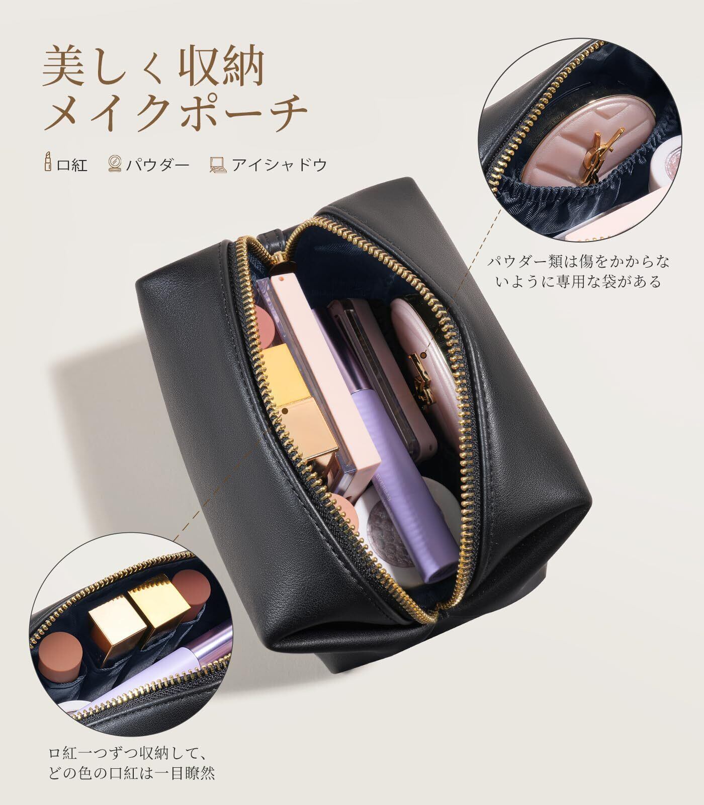 【耐久性の素材】ソフトレザー素材、肌触りは最高です、濡れた洗面上に置いても染みることはない(ユーザーからのフィードバックに基づき、バッグの内側をブラックからより目立つ色に更新いたしました。)