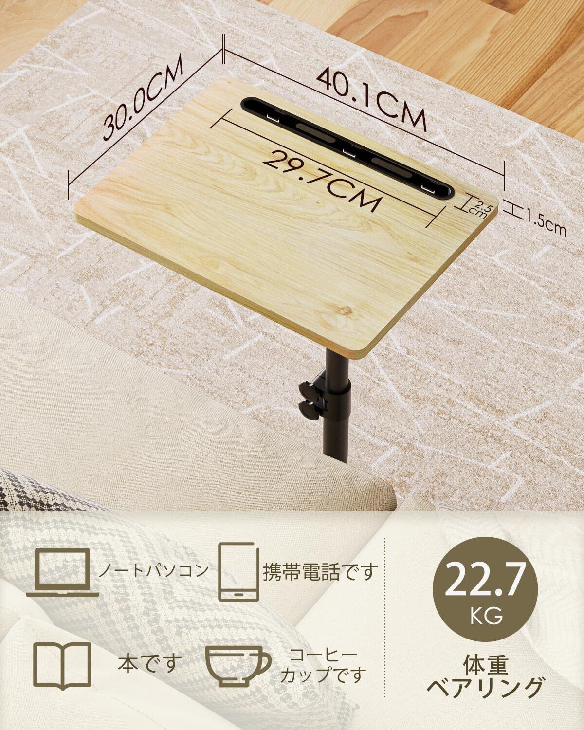 Masupu サイドテーブル 昇降式 ベッドサイドテーブル 360°回転 ソファーテーブル 介護テーブル 高さ調整可能 耐水 耐高温 安定性 耐荷重◎ 耐久性あり コンパクト設計 省スペース C字型 簡単組立 小型家具 家用昇降式テーブル 幅45×奥行30×高さ45-85cm 原木色