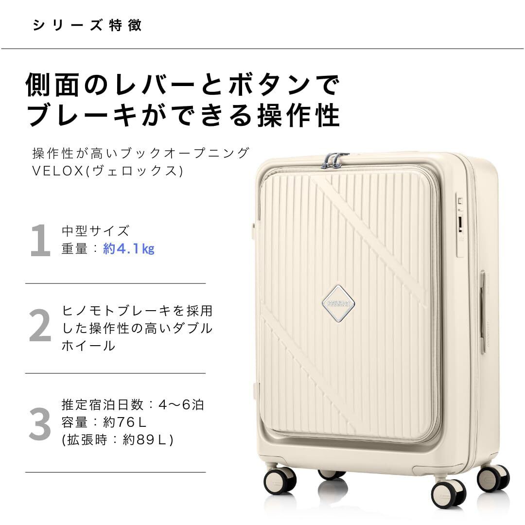 スーツケース キャリーケース ヴェロックス VELOX スピナー 68 Mサイズ 中型 4-6泊 ブックオープンニング 拡張機能付き 軽量 大容量 プッシュボタン式 ブレーキ付き サイドフック付き TSAロック 76(89) L 68cm 4.1kg ライトグレー