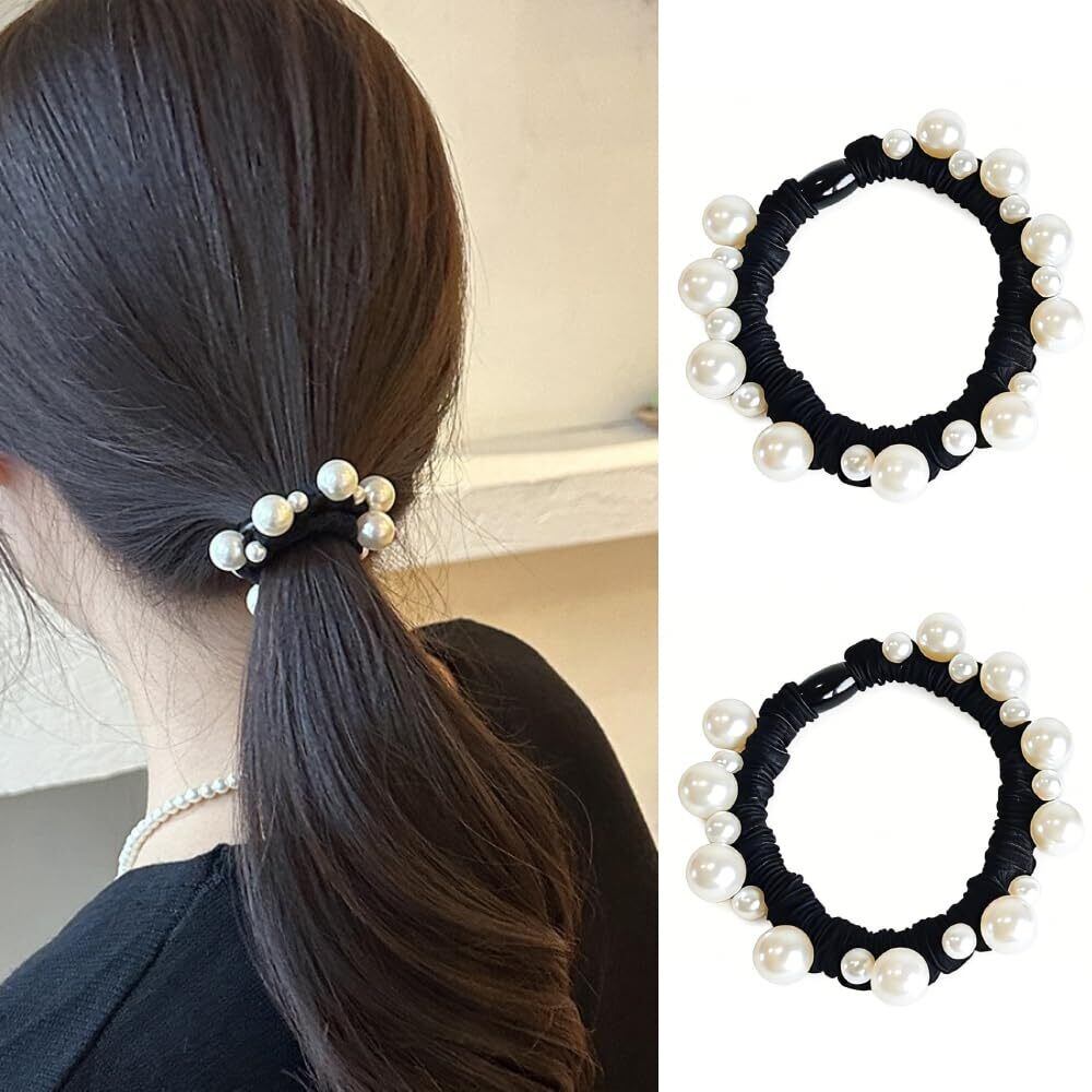 ヘアゴム パール 2個セット シュシュ ランダムパール レディース ヘアアクセサリー 飾り付き おしゃれ 上品 シンプル 大人 結婚式 韓国風
