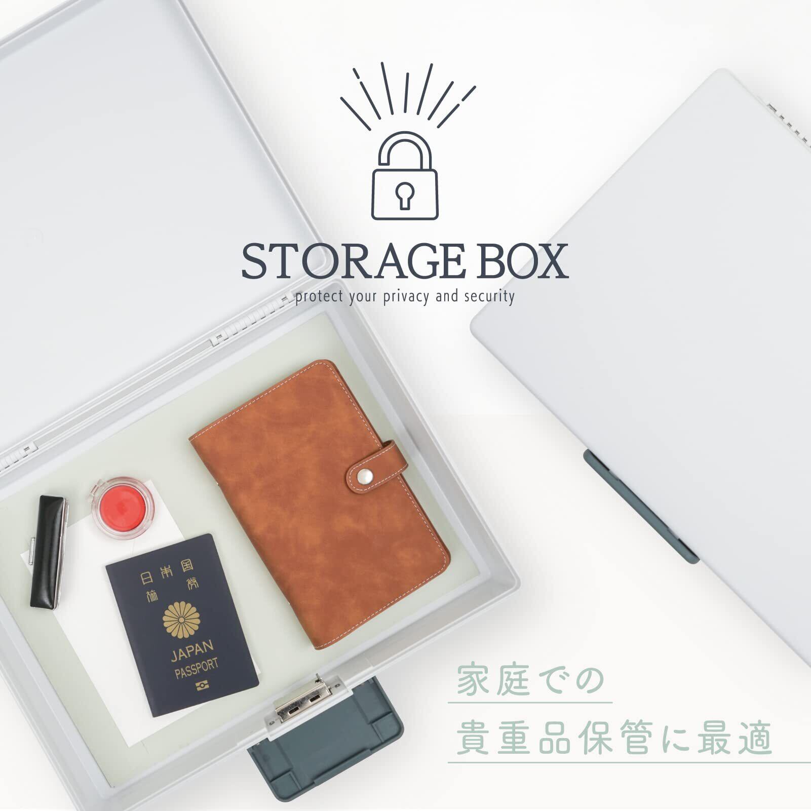 ●角形2号封筒を折らずにそのまま保管できる収納力です。●本体は軽くて取り扱いやすいプラスチック製です。●鍵の紛失の心配がない4桁のダイヤル錠です。●10,000通りからお好きな番号を何度でも設定できます。●ダイヤルで施錠しなくてもバックルを閉じることで、待ち運び時に上蓋が開くことはありません。●バックルでダイヤル部分を覆い隠せるので目に見える場所においても部屋に馴染みます。