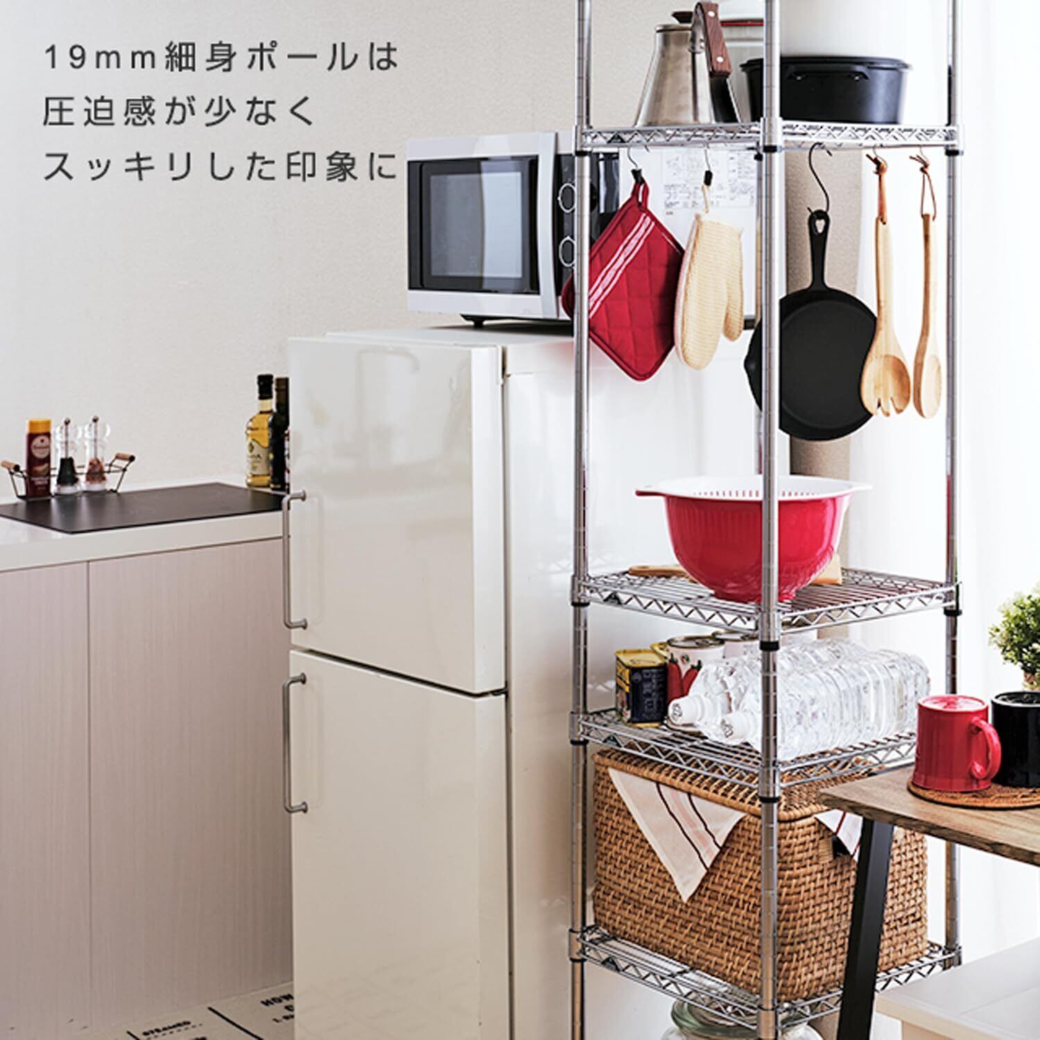 素材:シェルフ(棚)・ポール:スチール(クロームメッキ)、スリーブ:ABS樹脂