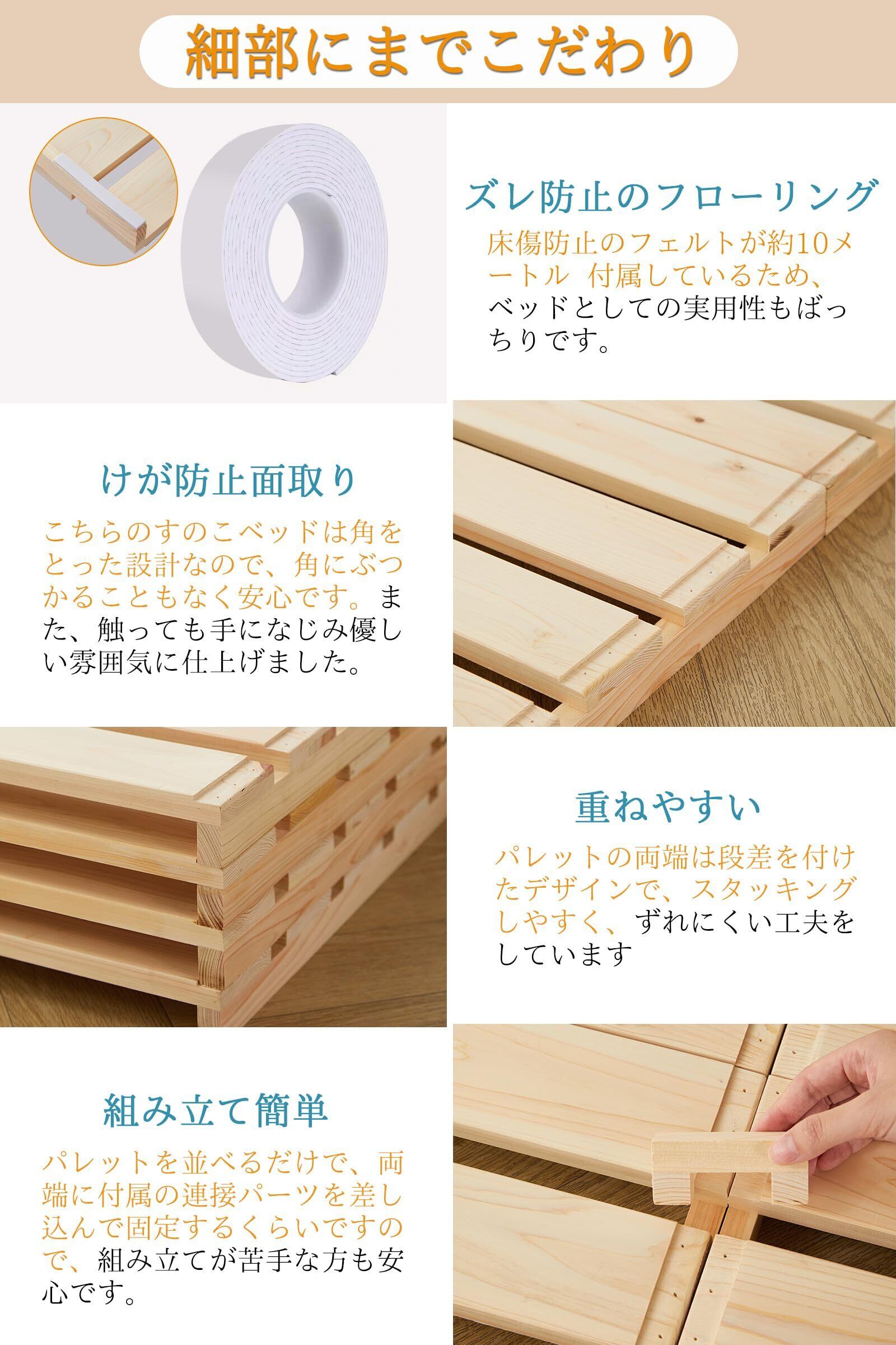 パレットベッド すのこベッド ダブル ベッド 折り畳み ベッドフレーム 天然木 国産ひのき 12枚