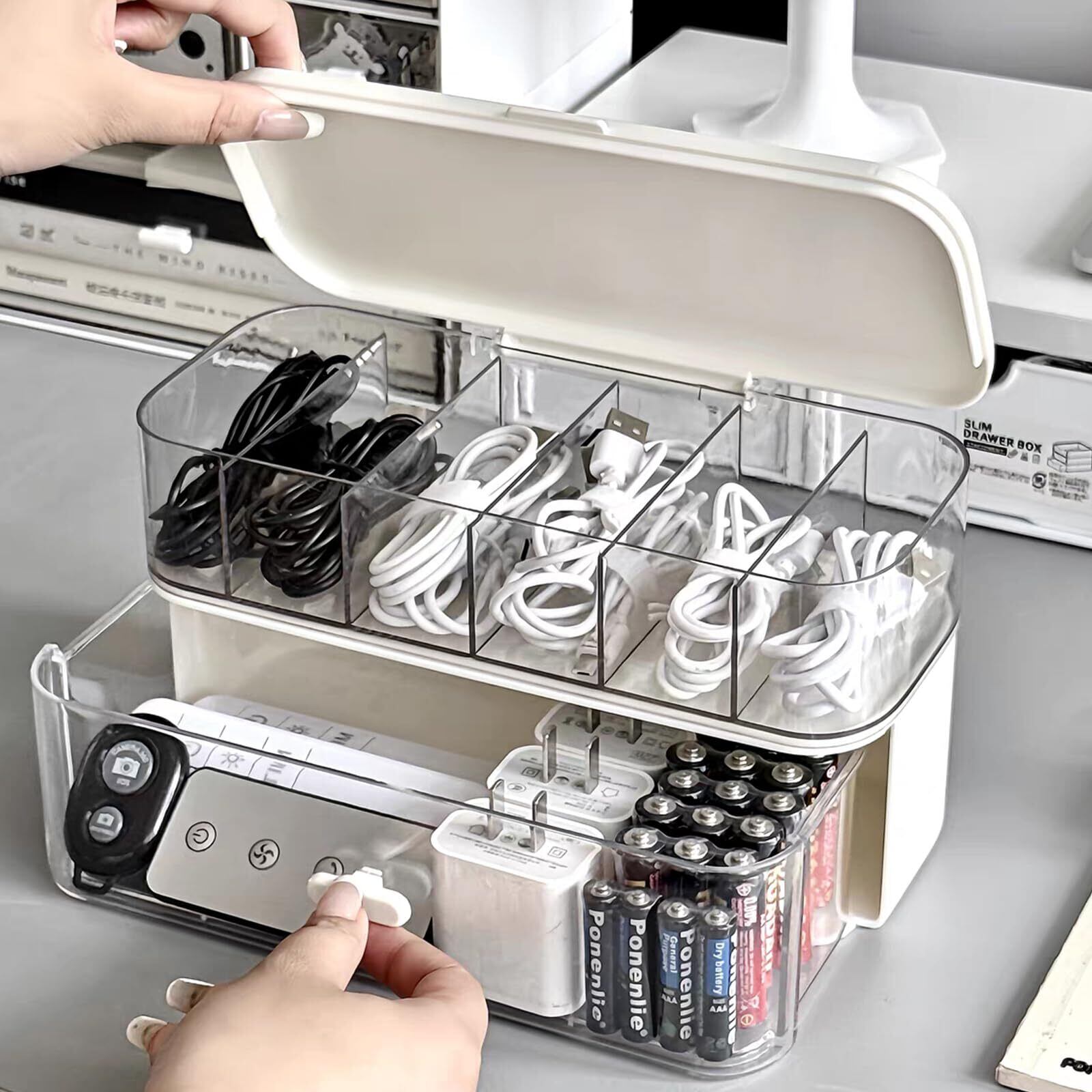 2層構造で、散らかす電源タップやケーブルを分けて整理でき、様々なイヤホンライン、usbデータ線、ケーブルをきちんと収納整理し、様々なケーブルを絡まずにきれいに保つことができます。