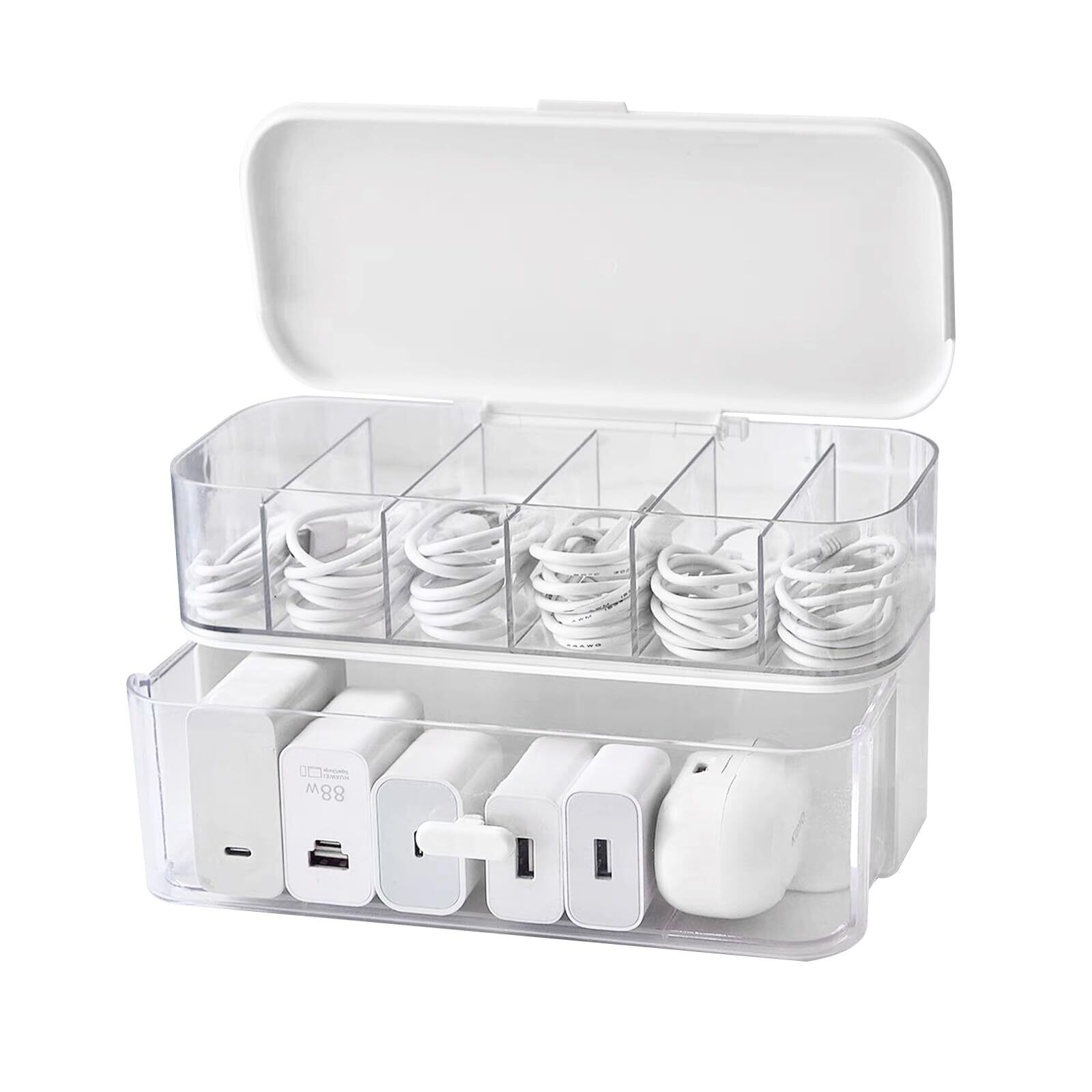 siawadeky ケーブル 収納ボックス 2層 6仕切り 収納ケース 蓋付き スタッキング可能 コード収納ボックス 充電ケーブル 充電器 イヤホンライン usbデータ 多機能 大容量 収納ボックス 家庭用 オフィス用 PC周辺小物用