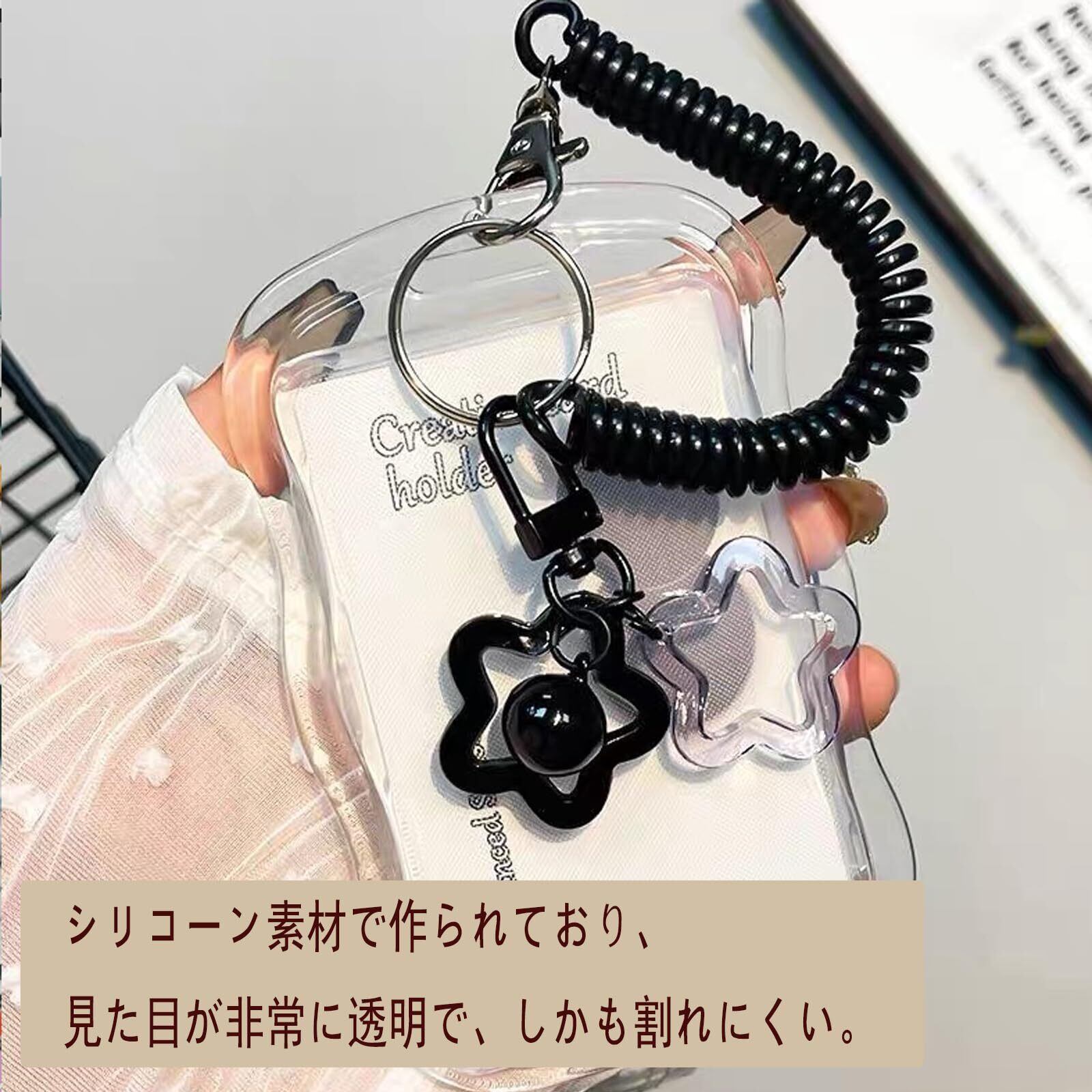 パスケース 定期入れ カードケース ストラップ付 ネームホルダー カードケース クリア窓 通勤 通学 かわいい キーホルダ付き ペンダント付き シリコーン トレカケース トレカホルダー 社員証 ローダー カード 収納 定期入れ ID ICカード 透明 女の子 高校生 学生 通勤 通学 (白い星)