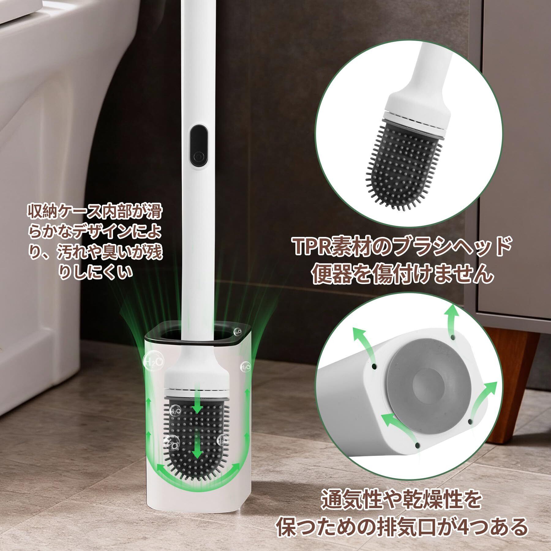 Eyliden トイレブラシ トイレ掃除 ブラシ 抗菌TPRヘッド 傷つけない 汚れ落ち 密閉ケース付き 速乾 通気 衛生 流せるシート対応 コンパクト おしゃれ ホワイト