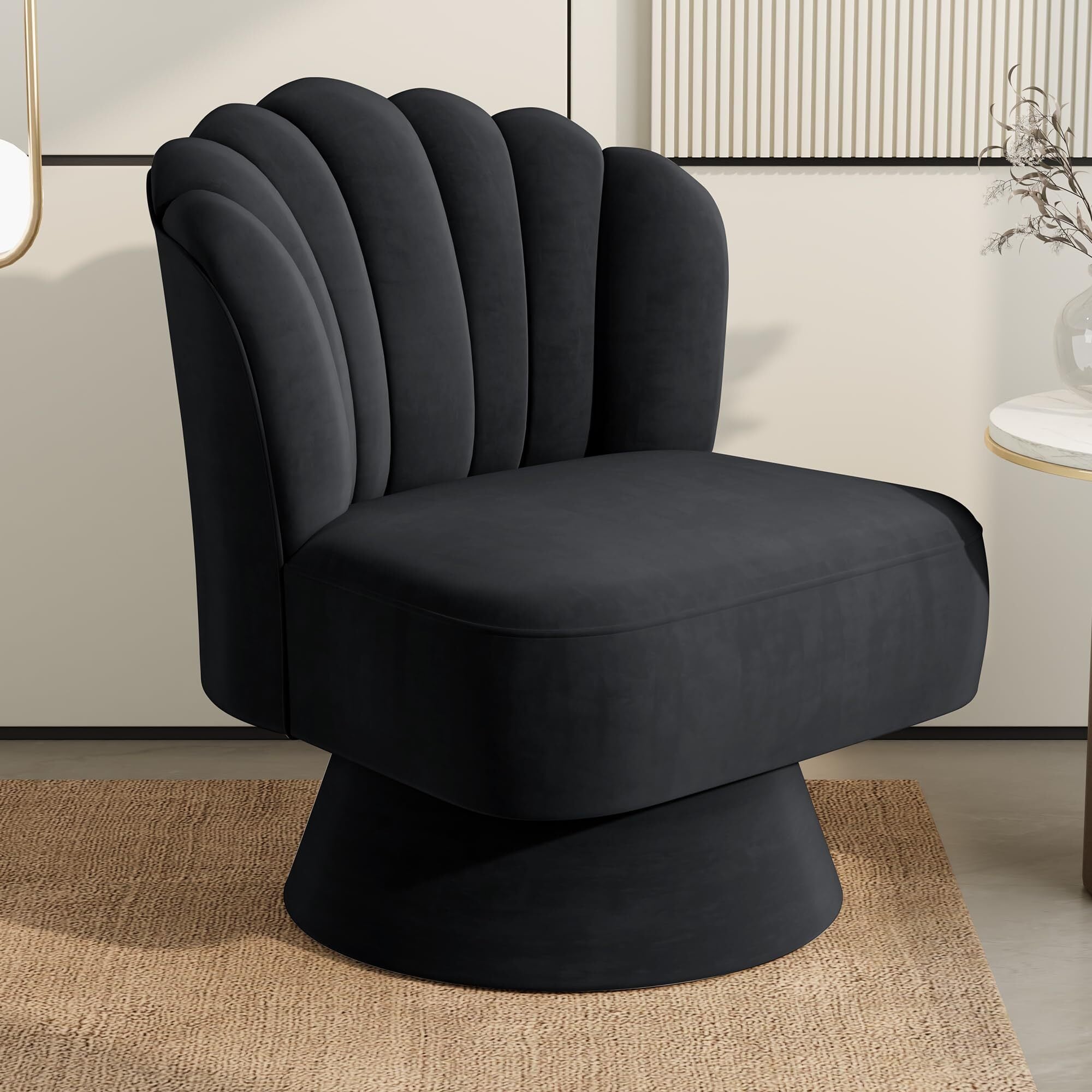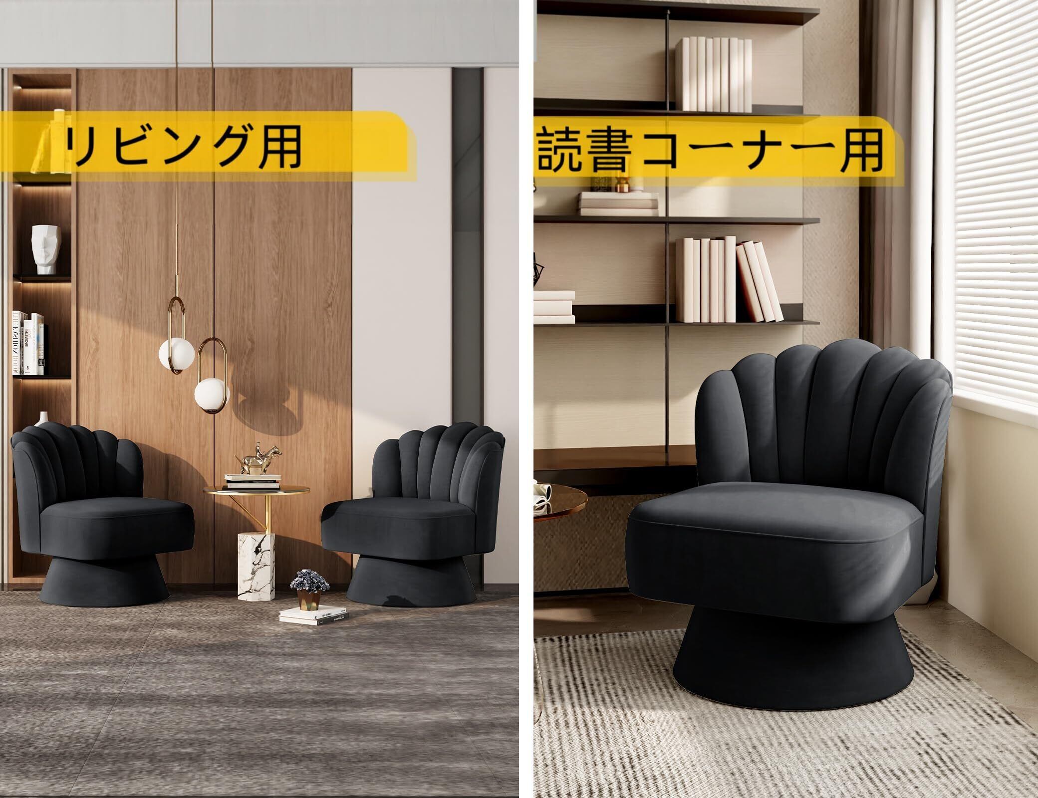 ソファー 1人掛け リラックス チェア バレルアクセントチェア 回転座椅子 シェル型 サイドコーナー 360度 タフティング加工の張り地 リビング ベッドルーム office chair ドレッサー(くろ)