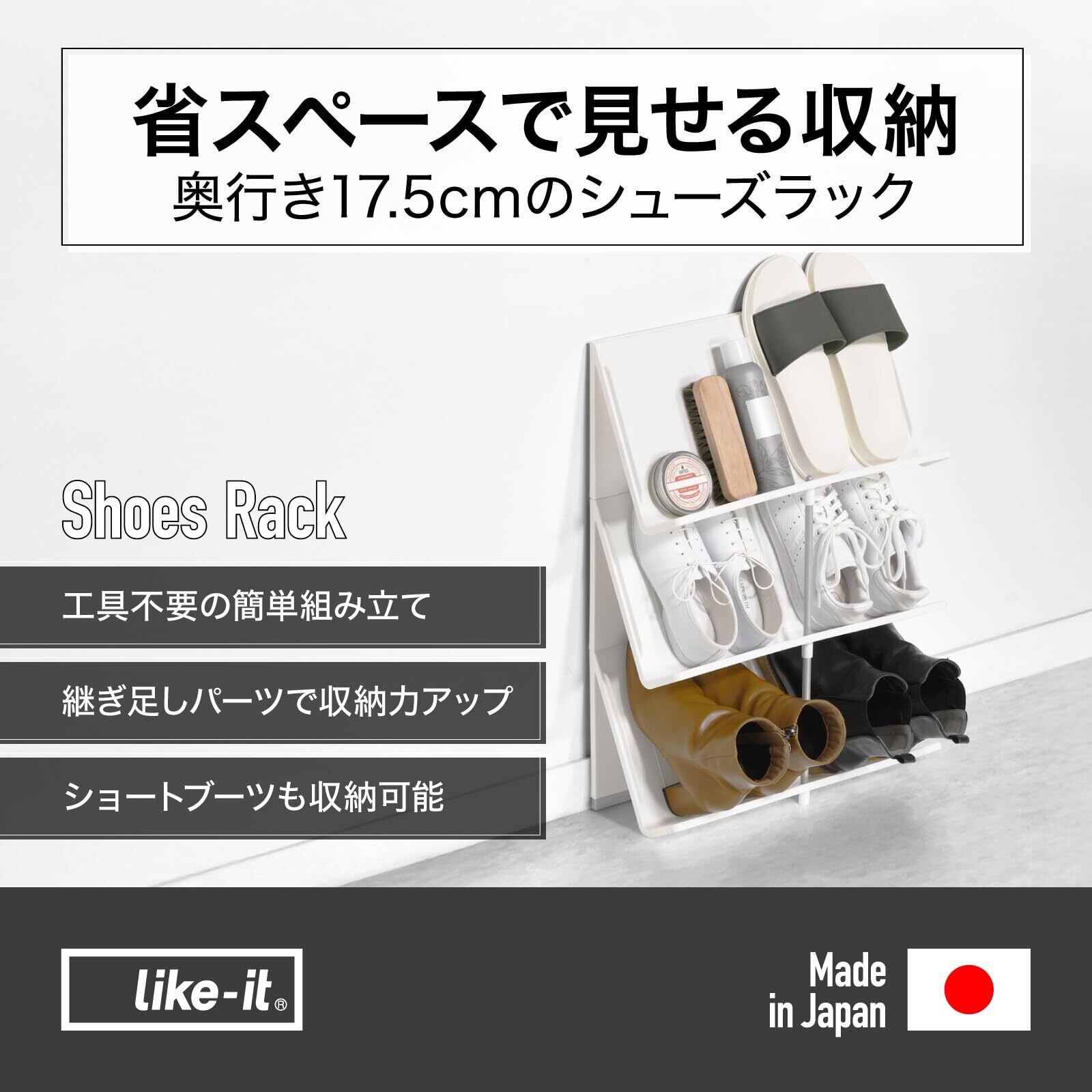 ライクイット(like-it) 靴収納 サッと取り出してすぐおでかけ シューズラック3段 普段履き サンダル 靴収納 奥行スリム 約幅45x奥17.5x高60.5cm ホワイト 日本製 リサイクルプラスチック30%以上配合 シューケア用品収納 消臭スプレー