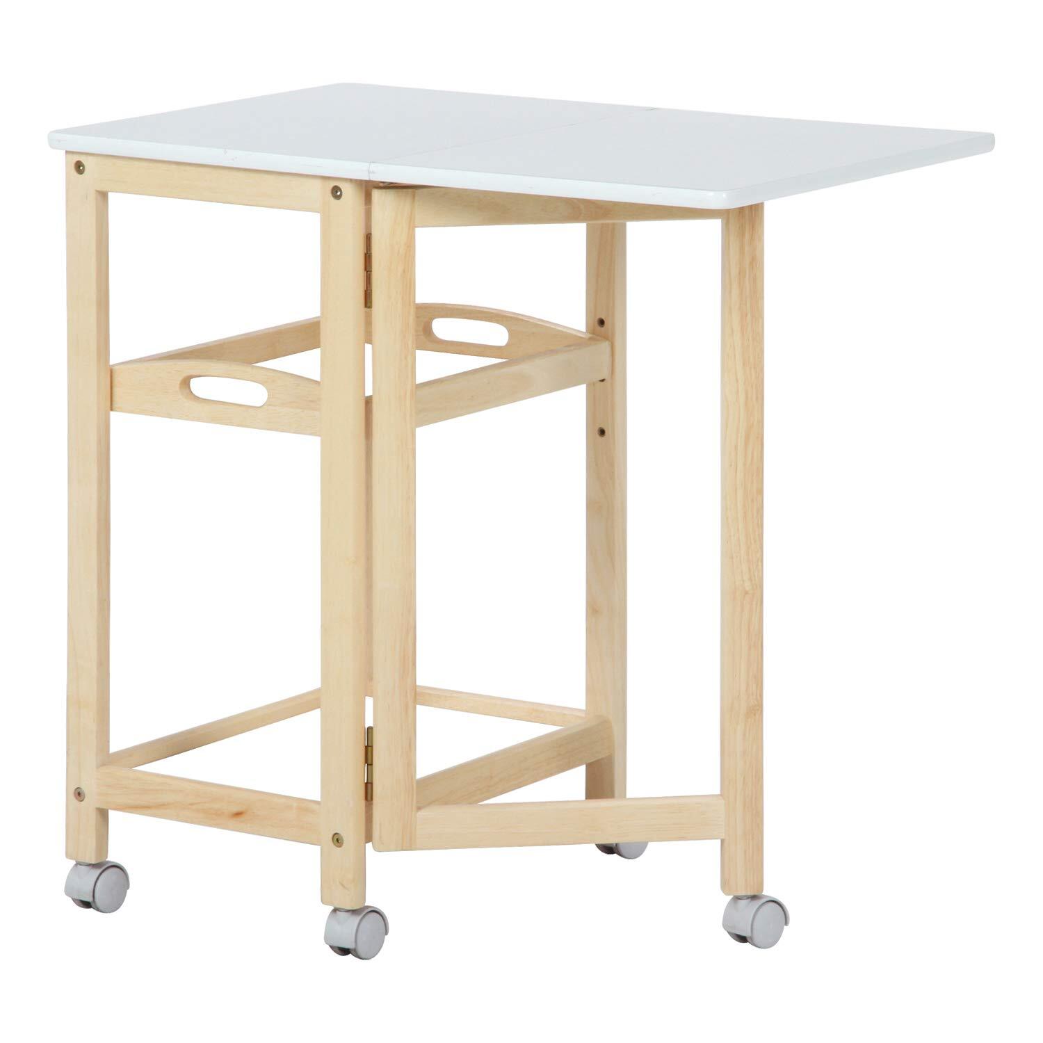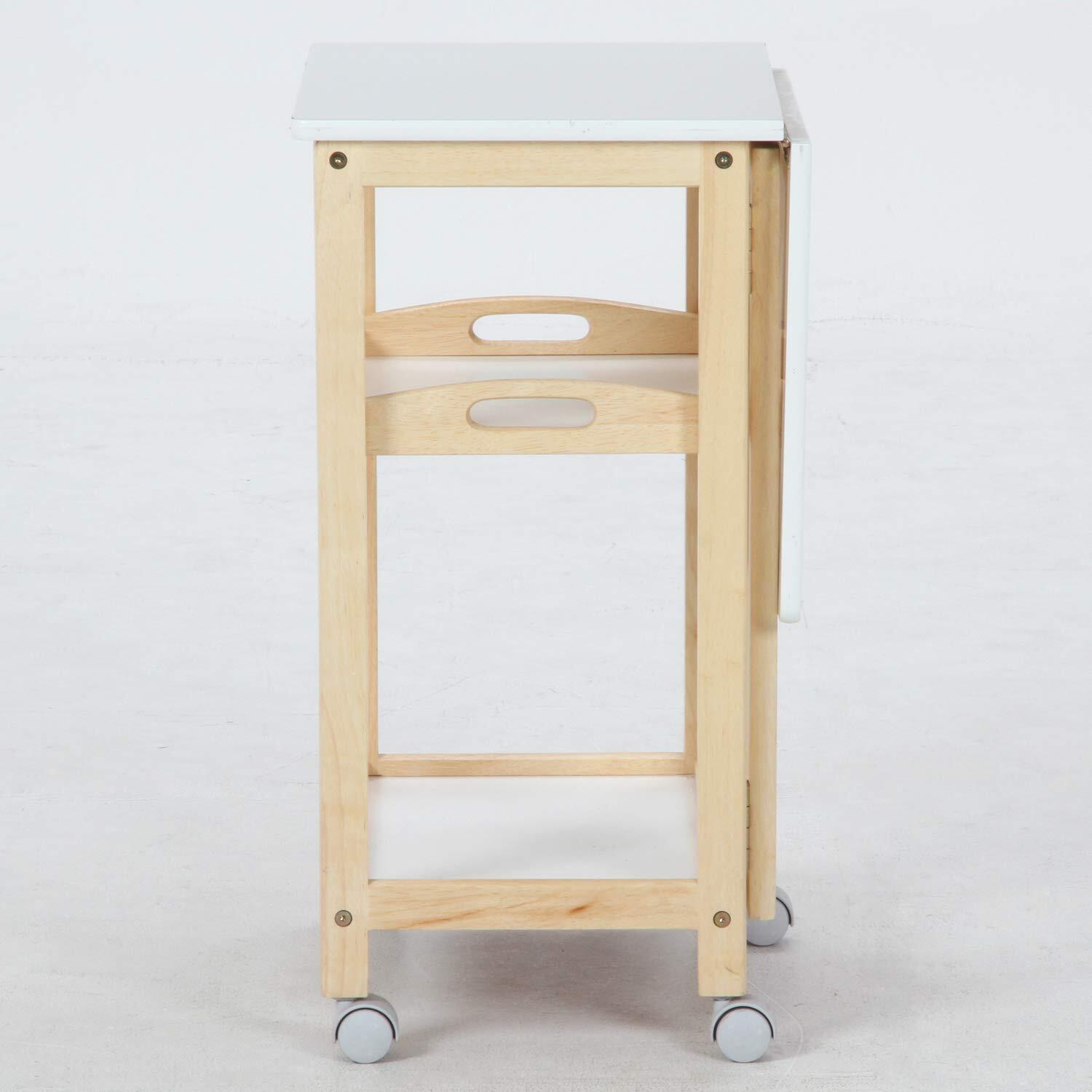 不二貿易 バタフライワゴン キッチンワゴン 幅35~70×奥行45×高さ70.3cm ホワイト ナチュラル 天然木 UV塗装 キャスター付き 88627