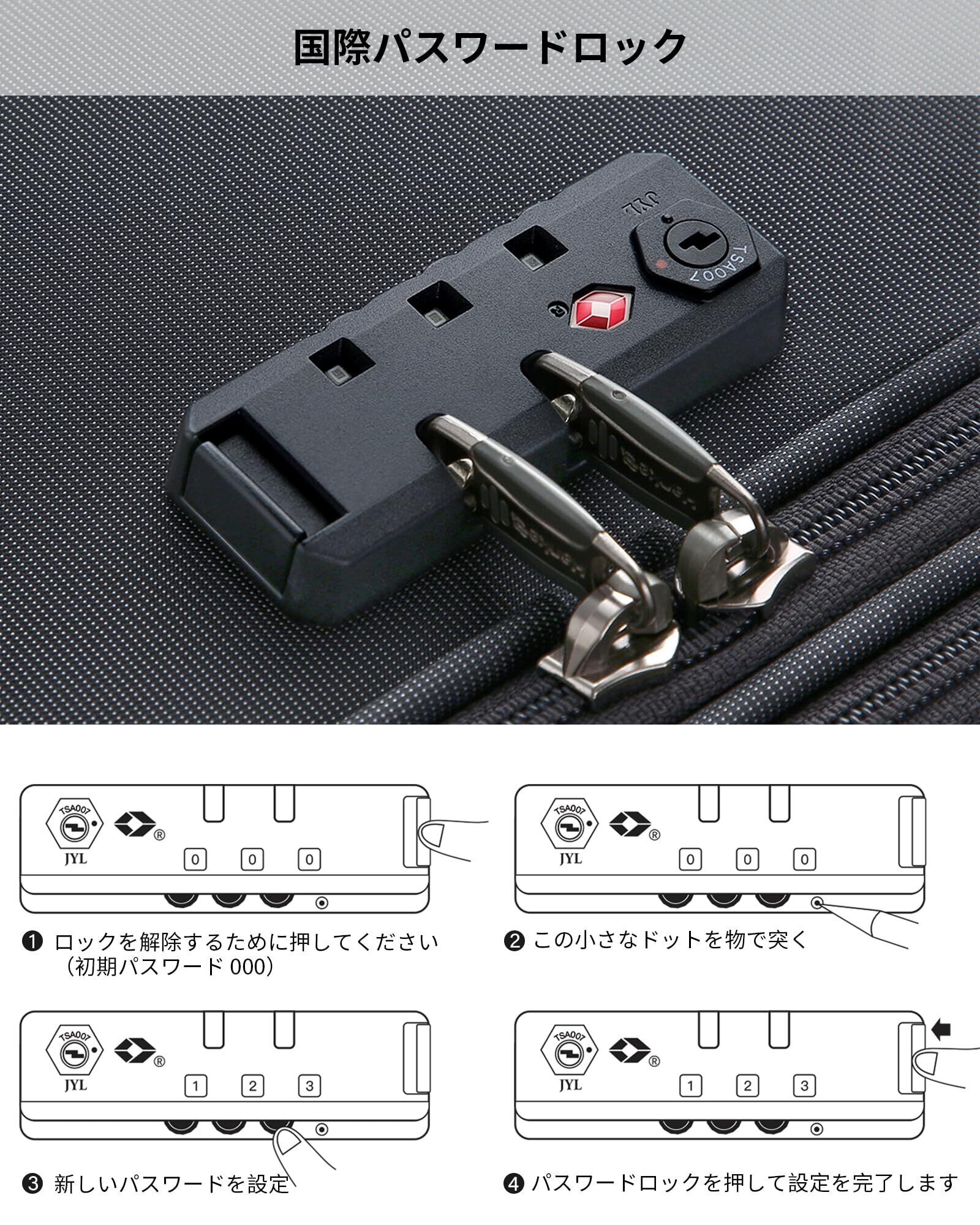 安全性と素材: TSA ロックを標準搭載しセキュリティ面で安心;ポリエステル素材を使用し、軽量でありながら強度を備えています。