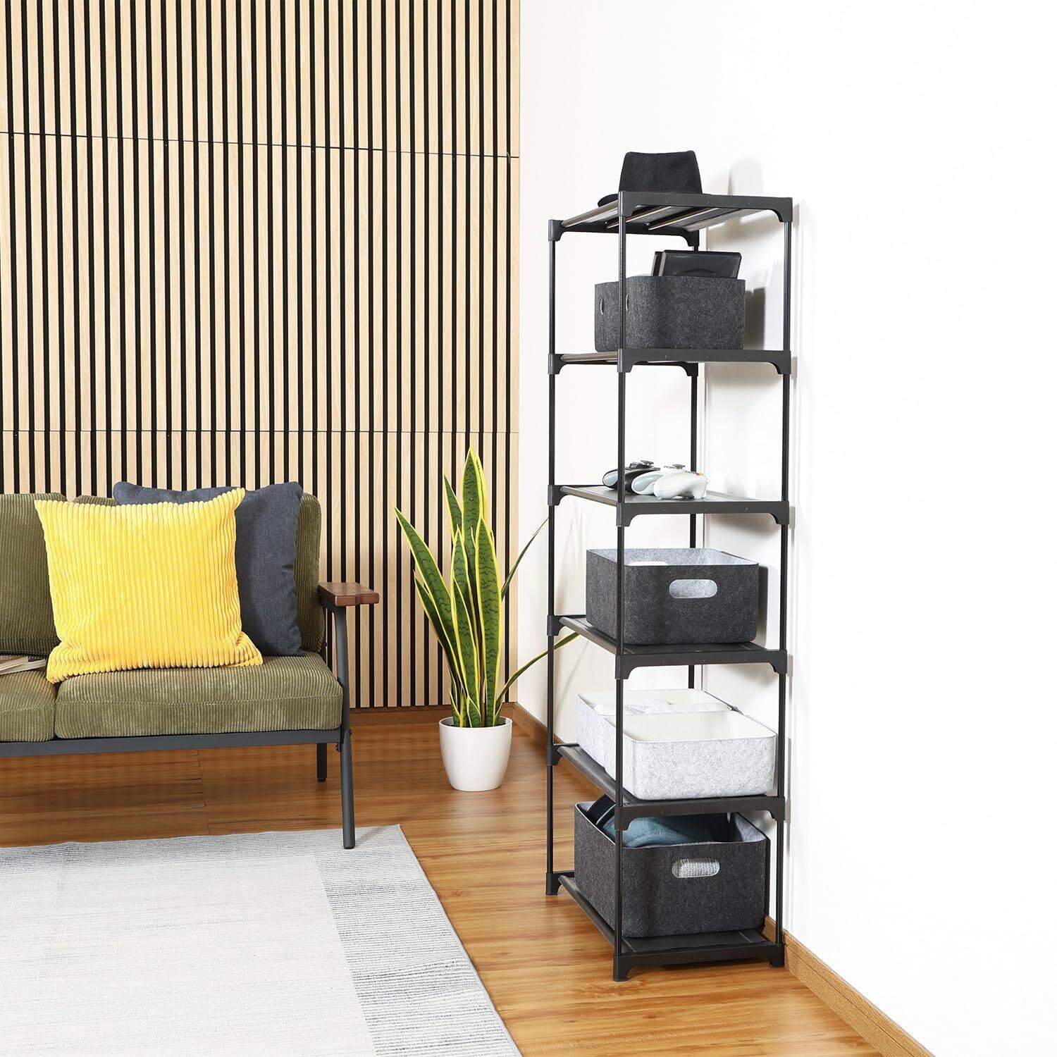不二貿易 オープンラック シェルフ 6段 収納棚 幅54.5×奥行30×高さ129cm ブラック 軽量 工具不要 51127