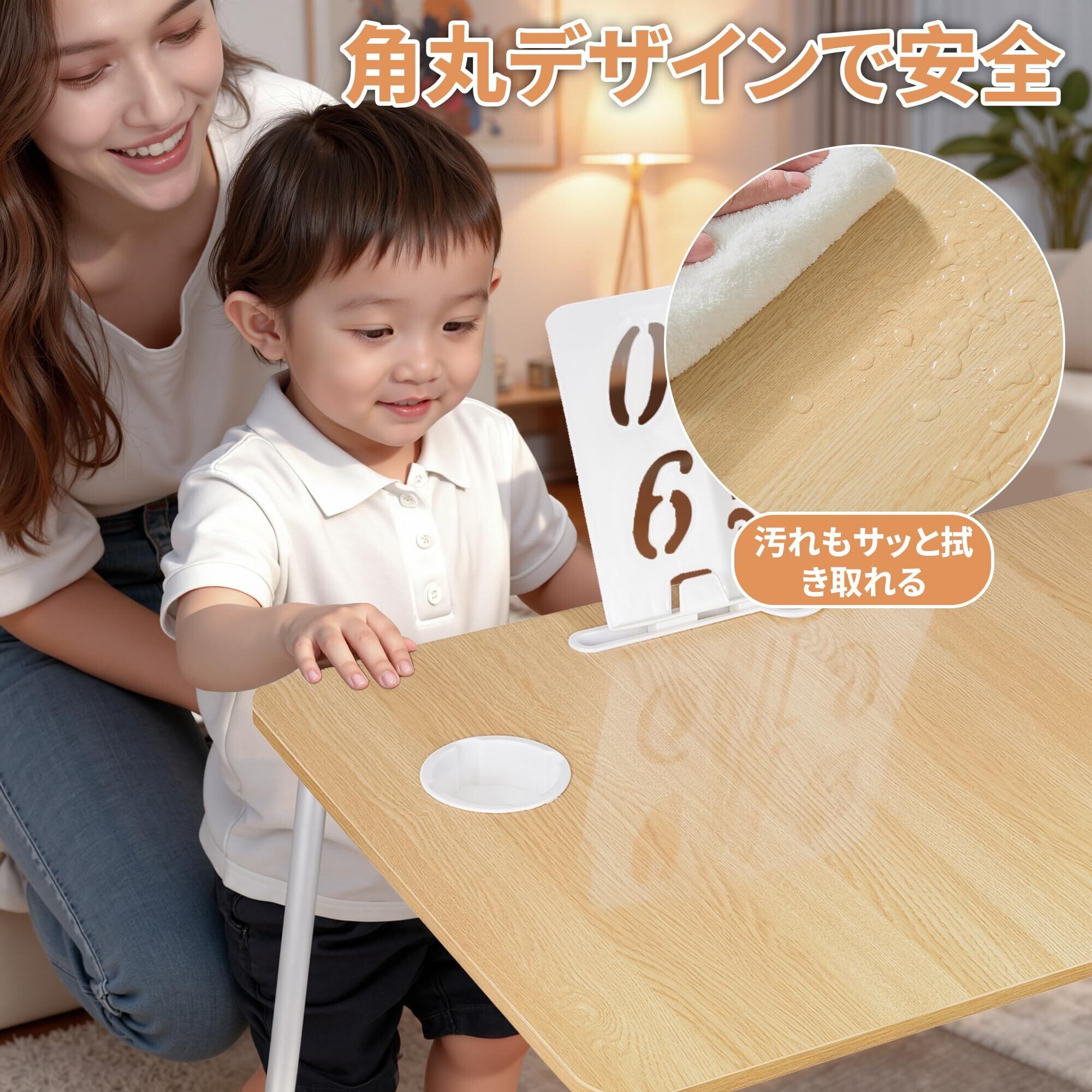 【優れた安定性】耐久性のある高品質木材で作られていて、耐荷重が強いです。脚部のU型仕上げに加え、脚の端に4つの保護パッドがあって、安定で滑らず、床との摩擦を防止します。天板は角は丸みを帯びており、お子様がいるご家庭でも安心してご利用頂けます。【お手入れ簡単】天板にはメラミン樹脂加工を施しているため、なめらかな質感で、傷や汚れに強く、汚れてもサッと拭き取ることができ、お手入れが楽です。